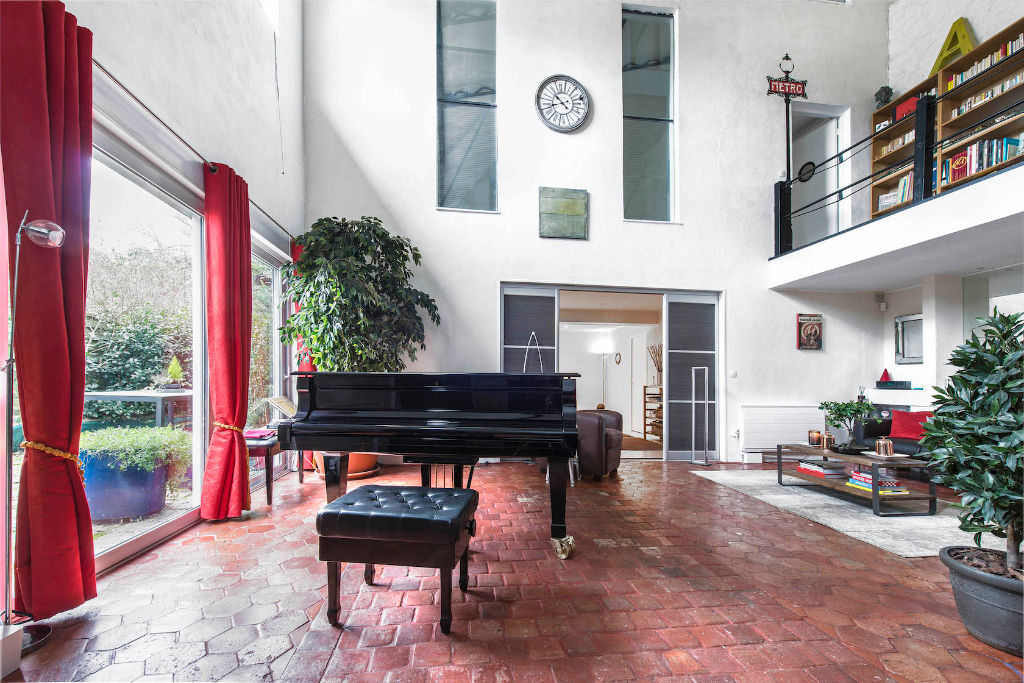 In the town of Vernou-la-Celle-sur-Seine, ideally located 10 minutes walk from the station (1 hour from Paris-Gare de Lyon) and in a quiet and protected environment, this loft with beautiful volumes and in perfect condition offers a surface of 153sqm Carrez with a beautiful terrace with trees and equipped with more than 40sqm. Completely redesigned and renovated recently (from the ground to the roof) with quality materials, the owner’s bias was to retain the impressive volumes of the original industrial-style structure, while at the same time imprinting a soothing contemporary imprint. The property has three levels: The ground floor is dedicated to the living space with a large living room “cathedral” bright offering up to over 8 m in height and an area of over 40sqm on the ground . Its original tiles, its efficient wood stove give it a friendly and warm atmosphere, with direct access to the terrace with large windows. Behind beautiful sliding doors, is currently a dining room (potential room) also open on the terrace out of sight. An independent health and a laundry with sink adjoin this beautiful room. Finally, a closed and equipped kitchen completes this level, with glazed view on the living room. A contemporary custom metal staircase gives access to a first mezzanine converted into a library – resting space and overlooking the living room, then to a spacious master bedroom with Eiffel beams, fitted wardrobes and bathroom. A second mezzanine offers another bedroom and office space, incorporating the second bathroom. This modern and functional loft will seduce lovers of beautiful atypical spaces while offering great customization capabilities. Possibilities of parking two vehicles Well subject to the status of the condominium. Access transilien station 10 minutes walk and bus 5 minutes walk Kindergarten and primary schools in the town / College 12 minutes in the town of Champagne sur Seine 11km from Montereau / 15km from Fontainebleau Copropriété de 25 lots (Pas de procédure en cours). Charges annuelles : 212 euros.