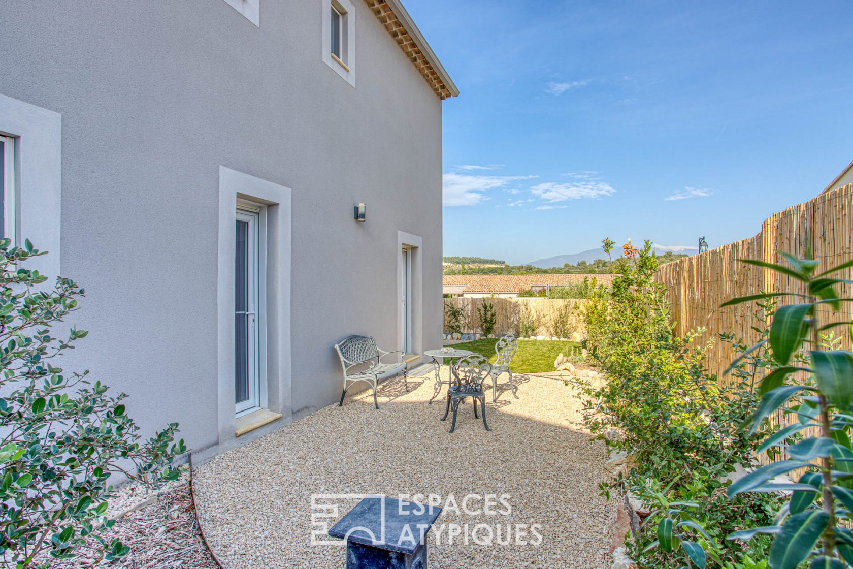 Close by the Mont Ventoux, this recent house with swimming pool and garage offers a pleasant view of the giant of the Vaucluse. Quietly located in a residential area, this house of around 92sqm built in 2018 benefits from modern comfort and incredible light thanks to its East/West exposure.