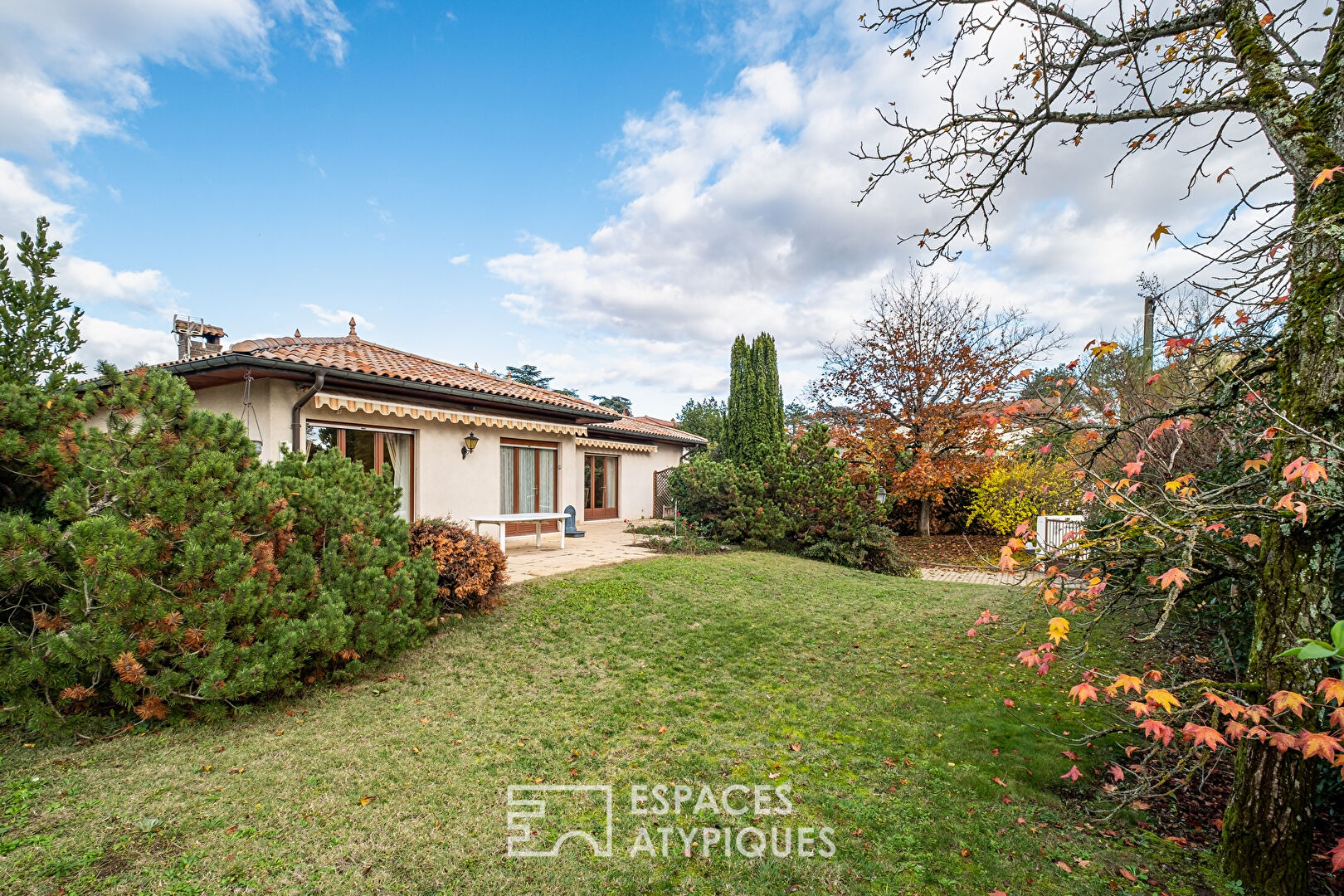 Située rue André Lassagne, au coeur du Vernay et de toutes ses commodités, cette maison de plein pied de 140m² prend place sur une parcelle de 1133m².