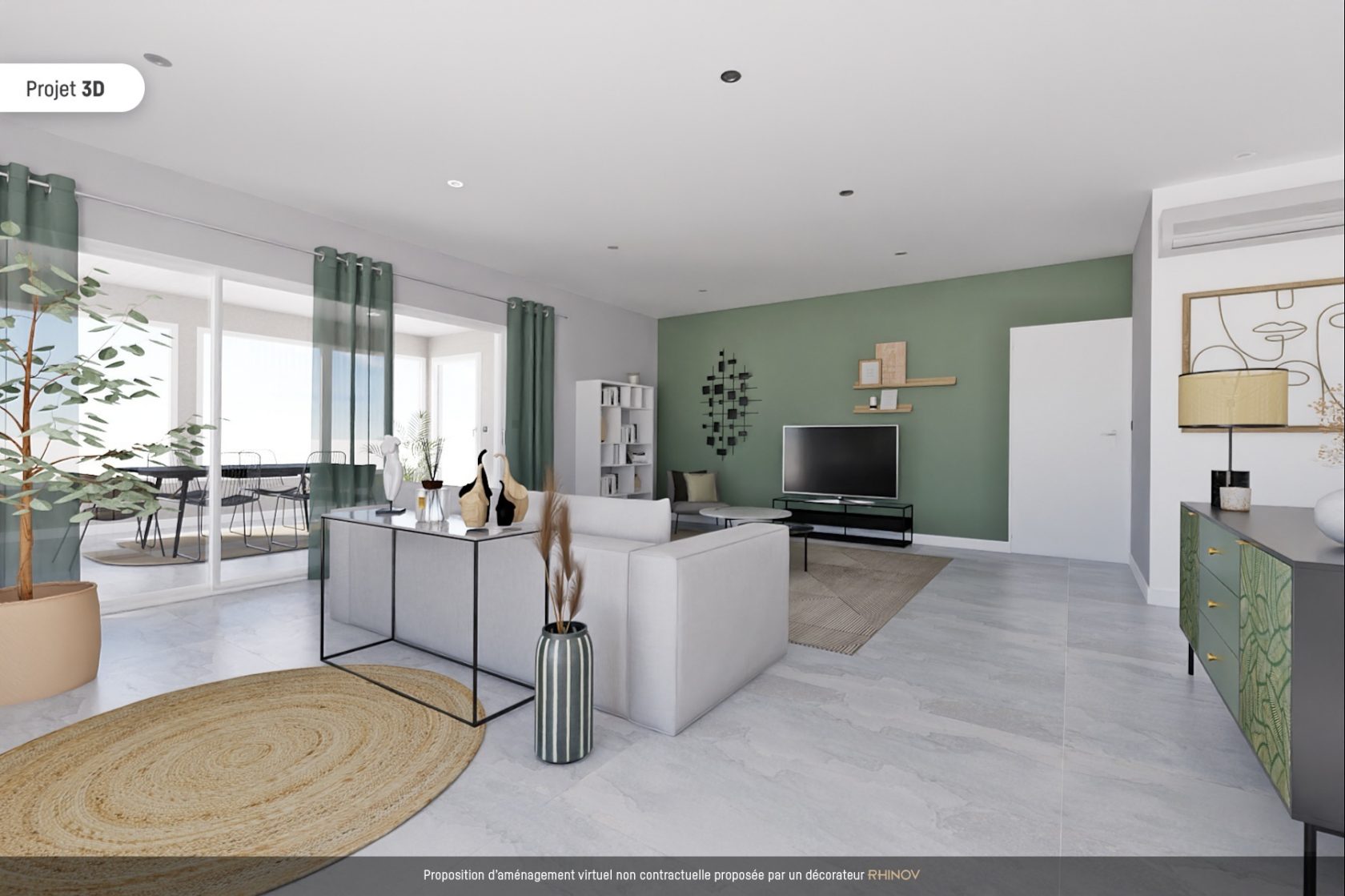 L’entrée ouvre sur une vaste pièce de vie avec cuisine ouverte se prolongeant par une véranda climatisée côté Sud-Ouest pour des moments ensoleillés et une terrasse au Nord.