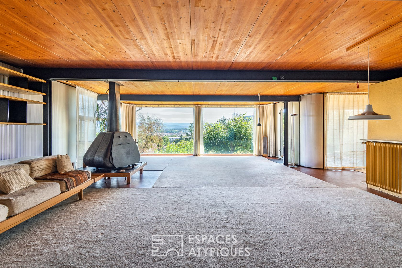 « Dragon Hill » par Jacques Couëlle, une maison d’architecte unique près du village de Mouans-Sartoux sur les hauteurs de Cannes, en vente ici et à l’agence Espaces Atypiques Nice-Cannes.