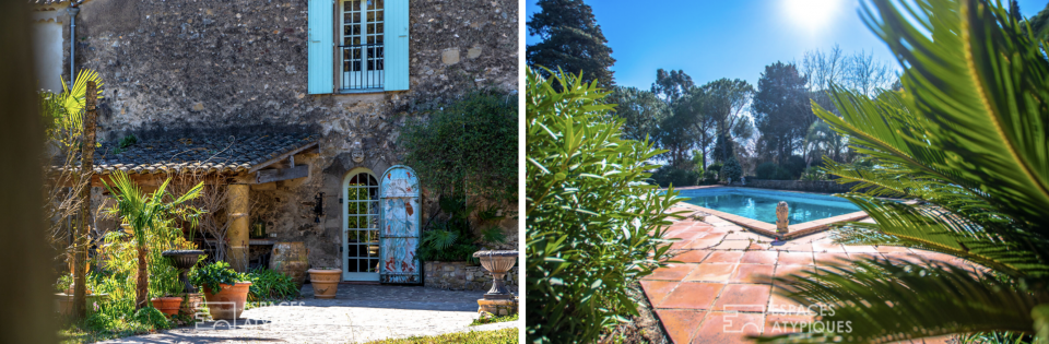 Au cœur de ce parc arboré planté d’essences méditerranéennes se cache un insoupçonnable trésor : ce sublime moulin à huile du 18ème siècle à Roquebrunes sur Argens, en vente dans l’agence immobilière Espaces Atypiques Saint-Tropez. Une spacieuse pièce à vivre à la voûte de pierre se révèle une fois la porte passée. La vis du pressoir à bois, une cheminée d’époque et les arcades en pierre de taille rythment les espaces de vie. Rappels d’un passé productif, elles sont autant d’accroches à l’imaginaire pour ce lieu atypique à réinventer. Un escalier en colimaçon en bois et acier mène aux chambres de l’étage, offrant une splendide vue sur le calme des environs. À moins que… en tendant l’oreille, et si on entendait encore les meules grincer ?