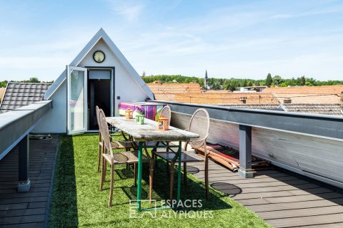 It offers the independence of a house thanks to its private entrance and its panoramic rooftop of 21 m² for private use.