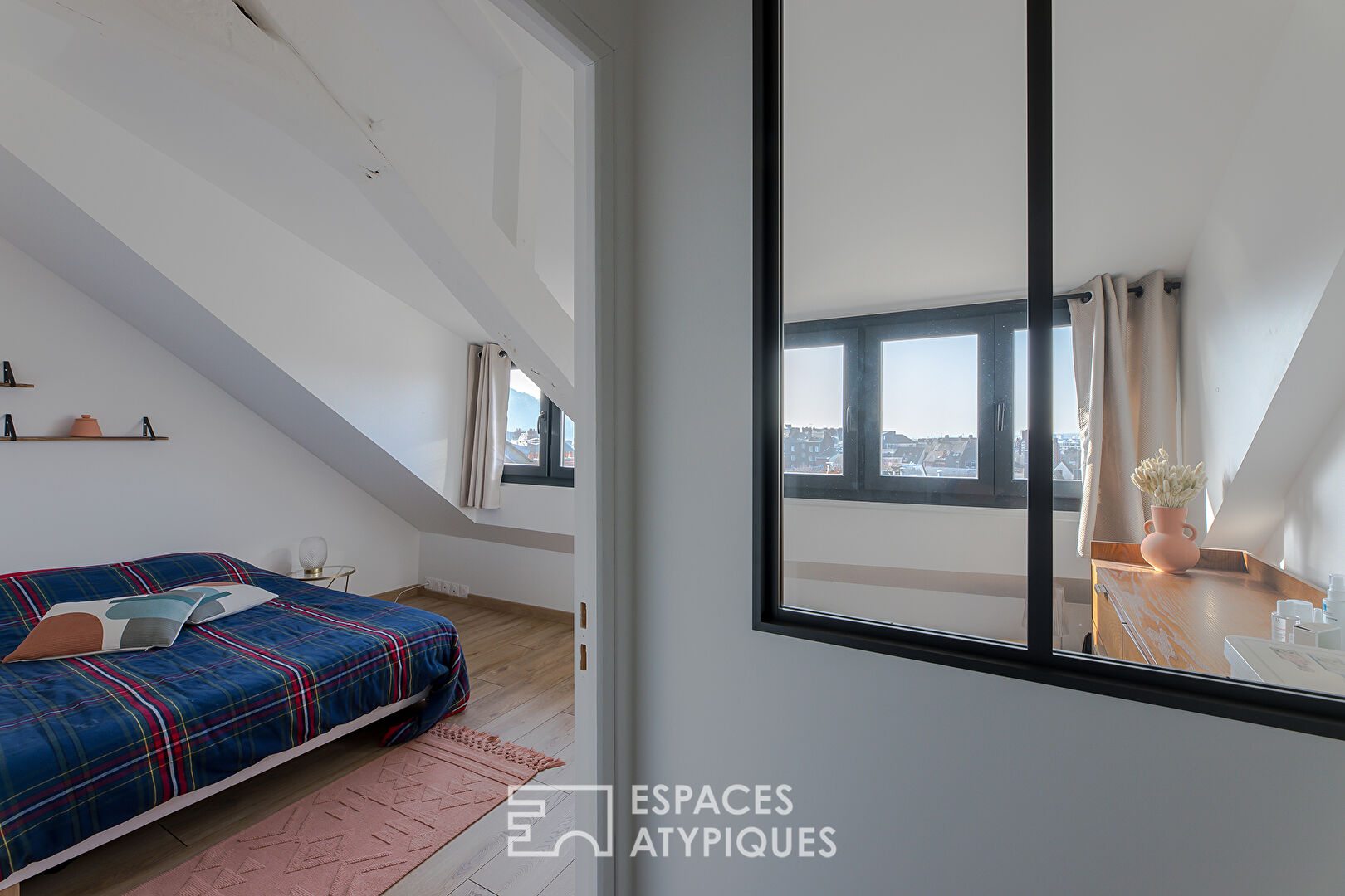 Thanks to its double exposure, it offers a breathtaking view of two jewels of the city of Rouen: Notre-Dame Cathedral and Saint-Maclou Church.