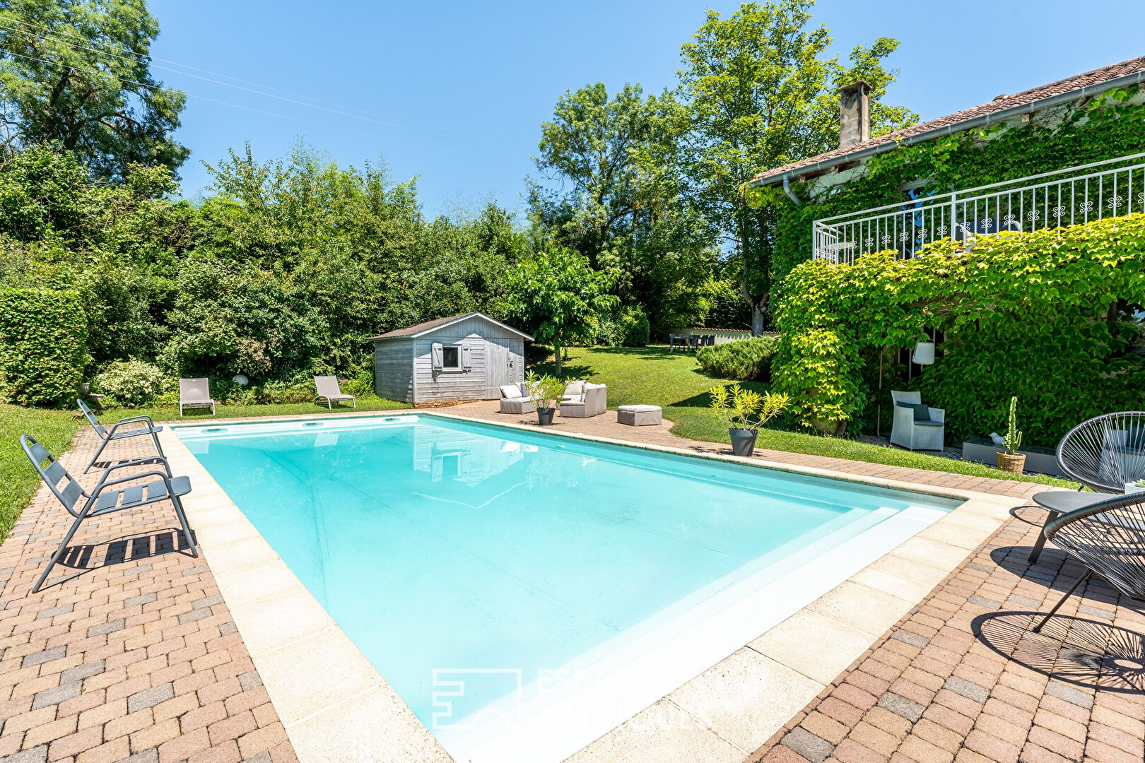 The swimming pool area, with trees and surrounded by a relaxation area, is ideal for enjoying sunny days. Several parking spaces as well as an independent 35sqm studio benefiting from two independent terraces complete this property, offering varied spaces and which could be considered as an Airbnb.