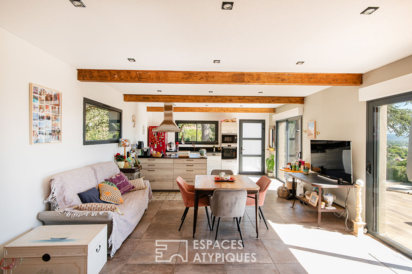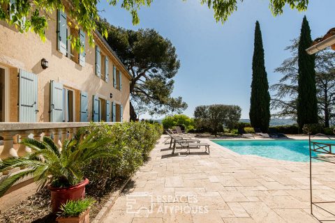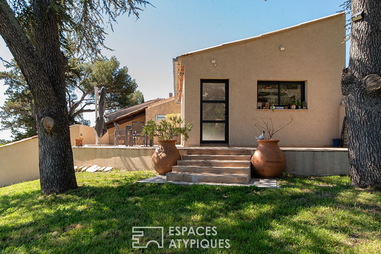 The main house, approximately 350 sqm, seduces with its generous volumes, its brightness and its warm atmosphere.