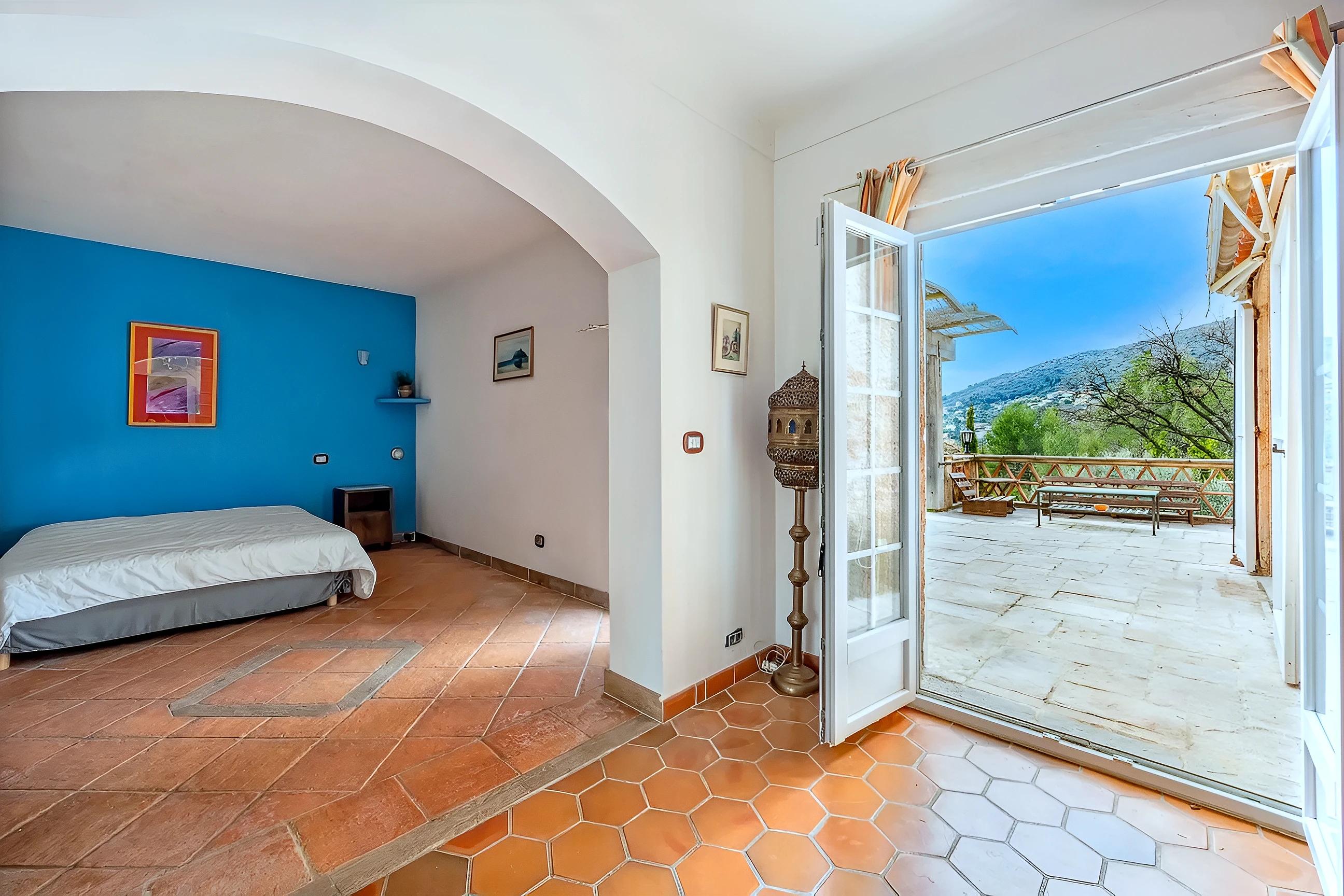 Dominating a landscape where the blue of the Mediterranean meets the contours of the surrounding mountains, this charming property is nestled in an enchanting, secluded setting. Set within a 3,500 sqm parkland of lush vegetation, it embodies the essence of absolute tranquility, offering a rare panorama of the authentic village of Falicon and the sea beyond.