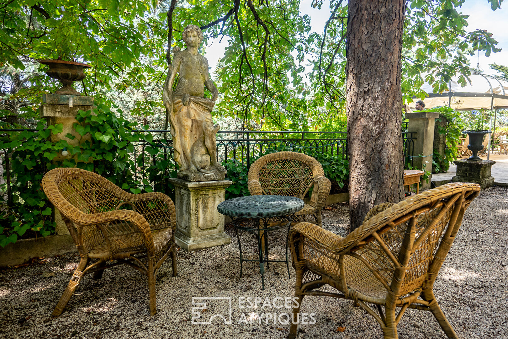 Nestled on the hillsides, this 19th century neo-gothic style residence is just a stone’s throw from the centre of the historic town of Tournon-sur-Rhône. It is by walking up an alley of majestic cedars that you will reach the multiple terraces on which the different parts of the property, which covers about 2 hectares, are organised.