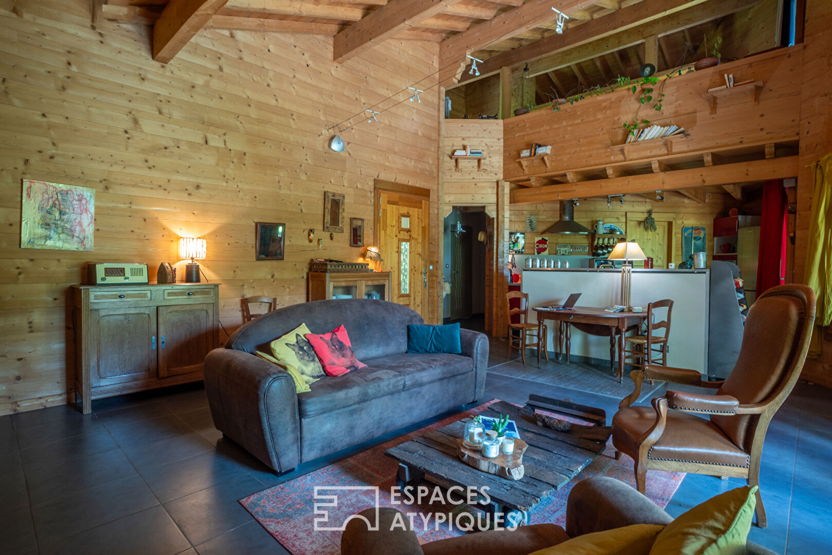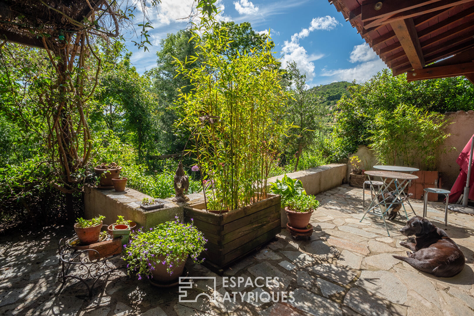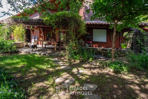 Nestling in the heart of a lush garden planted with plants and flowers, trees and shrubby hedges, such as Japanese maples, olive trees, jasmine, lavender and rosemary, honeysuckle and peonies in bright colours and shimmering with the changing seasons, rich in scents that invite you to daydream in this haven of serenity, the wooden house blends perfectly into its unspoilt, natural surroundings.