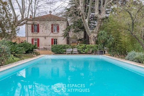 Sober and elegant, the house is located on the edge of a magnificent garden of over 3500 sqm decorated with cedars and centuries-old plane trees. A swimming pool, located in the extension of the shaded terrace allows a swim without any opposite. The ground floor with high ceilings is shared between a large kitchen-dining room and a double living room with fireplace. Cement tiles and moldings stand alongside more contemporary fittings. An office and a toilet complete this level.