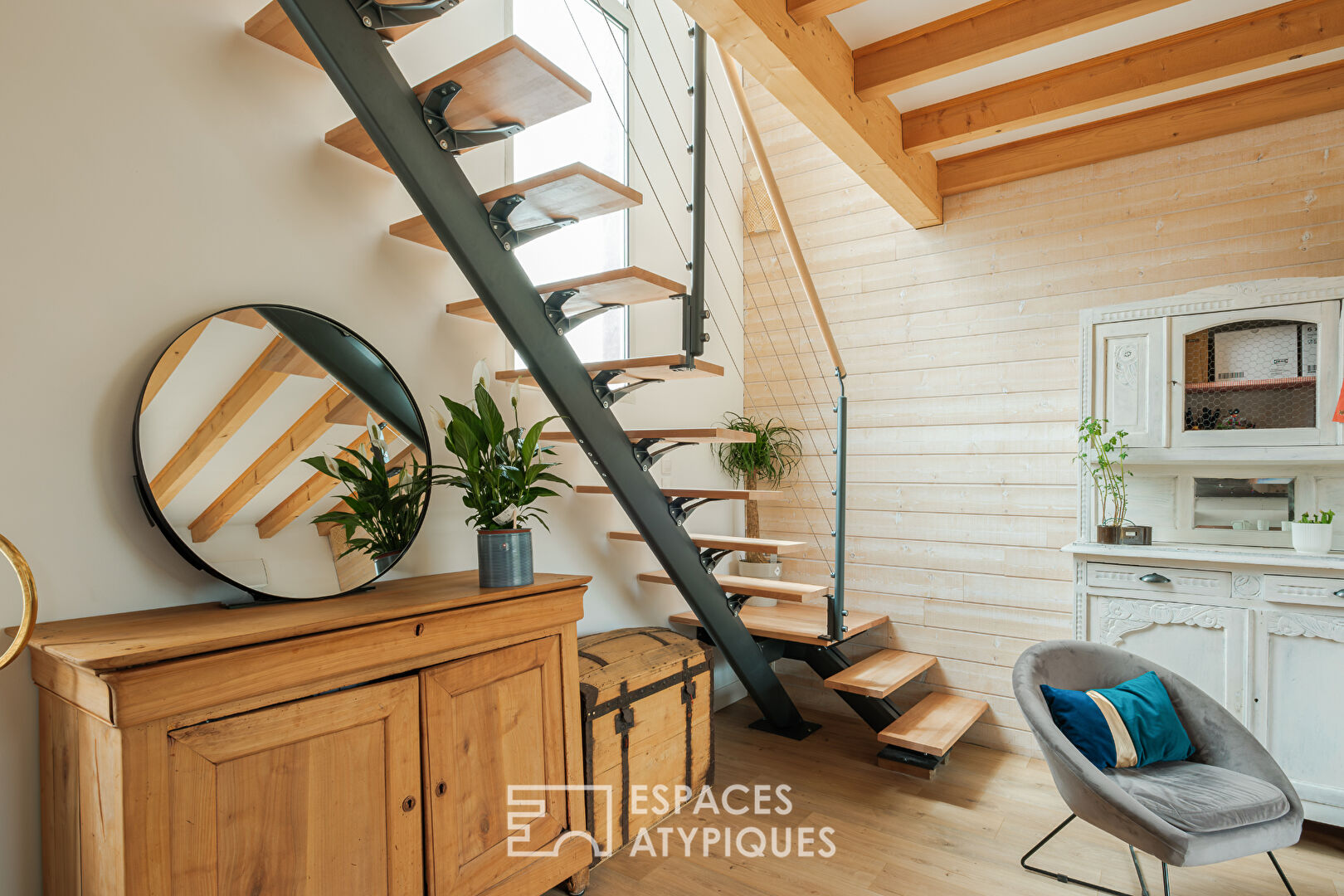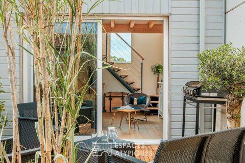 Located between the old port of La Rochelle and the seaside promenades of Les Minimes, this wooden frame house from 2008 stands out for its brightness, its large warm living room and its studio for rental use (around EUR400 excluding charges).