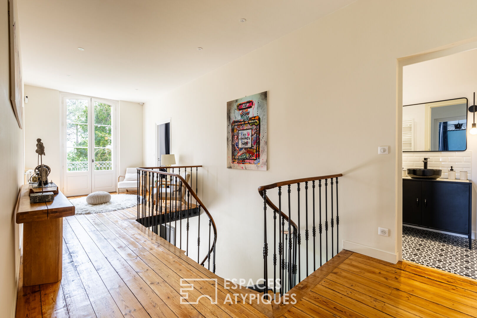 The first floor reveals two cozy bedrooms, a lounge-library or an office and a bathroom. This second building is a real refined and tastefully decorated cocoon of approximately 170 m2. Thirdly, the mansion reveals a rare gem of approximately 246 m2 exuding authenticity and timeless charm. From the entrance, it reveals cement tiles and an old staircase which set the tone. An elegant kitchen with its independent dining area, a first living room of 24 m2 and a second white living room with subtle and pure decoration enhance the place.