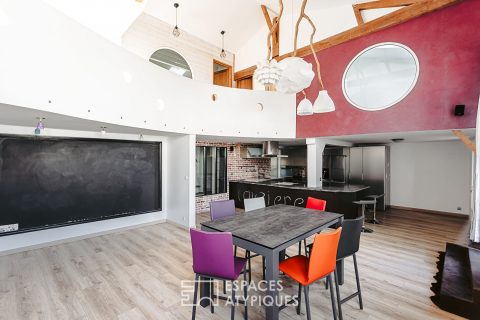 Located in the town of Nieul Sur Mer, close to the port and the sea, this old business renovated into a loft surprises with its atypical volumes and its organization into two homes.