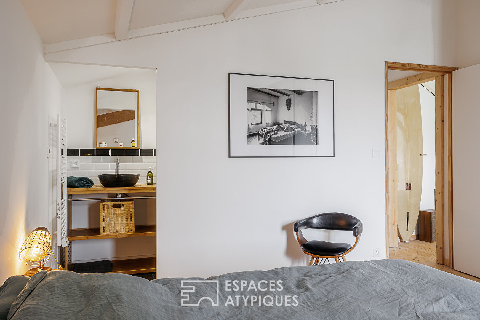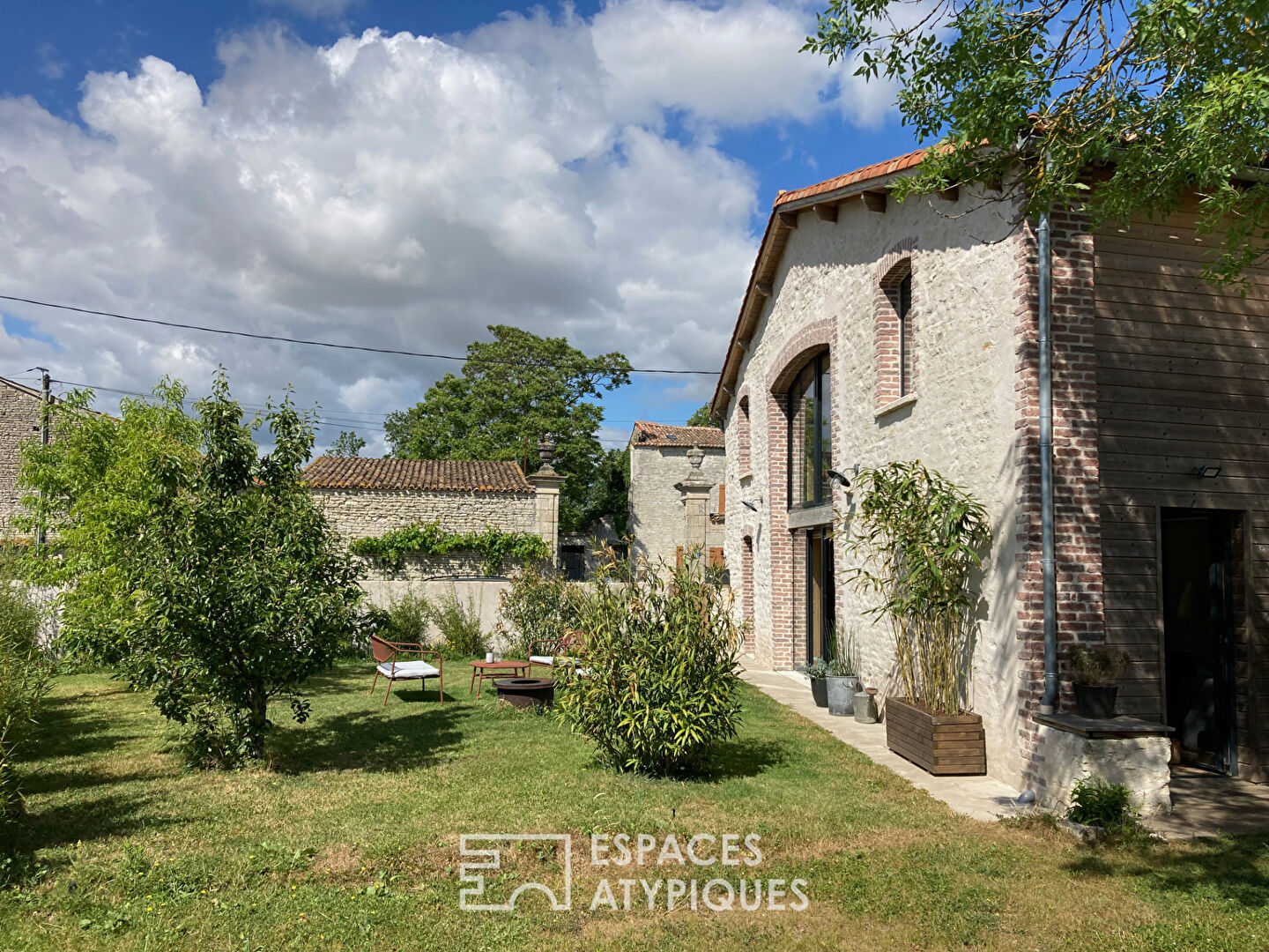In the heart of a peaceful village, accessible by the expressway just 25 minutes from La Rochelle and close to Niort, this barn has been completely rehabilitated and renovated. This stone building, enhanced by its large openings dressed in briquettes and by its wooden cladding, offers a living space of more than 140 m2. The entrance reveals a bathroom, a toilet, a large living room and its back kitchen, then a first bedroom or an office. The whole has been redesigned with noble materials such as wood, Turkish stone and aluminum joinery. The main room enjoys a pleasant South West exposure. The kitchen has been designed to blend in with the charm of the place thanks to its discreet linearity and its quality materials and equipment. Upstairs, accessible by a beautiful wooden staircase, a mezzanine is bathed in light from the large bay windows. It distributes three bedrooms with comfortable volumes including a master suite with its bathroom. Outside, a private and fenced garden of around 250 m2 makes it possible to create two spaces to the south and to the west for parking, relaxing or having lunch in the tranquility of this village town. Protected from vis-à-vis thanks to its vegetation, the outdoor space is an invitation to calm and offers a pretty green picture from the house. Shops, amenities, transport and schools are 5 minutes away. Note that the TGV station of Niort is accessible in less than 10 minutes. An ideal place for a family, a second home or an atypical housing project in the countryside. A rare property to visit quickly. Complete photo report on our Espaces Atypiques La Rochelle website. ENERGY CLASS: A / CLIMATE CLASS: A. Estimated average amount of annual energy expenditure for standard use, based on energy prices for the year 2021 from 620 to 900 euros. Contact: Julie BADIANE 07.86.47.30.44. Commercial agent (EIRL) RSAC La Rochelle n°453763468.