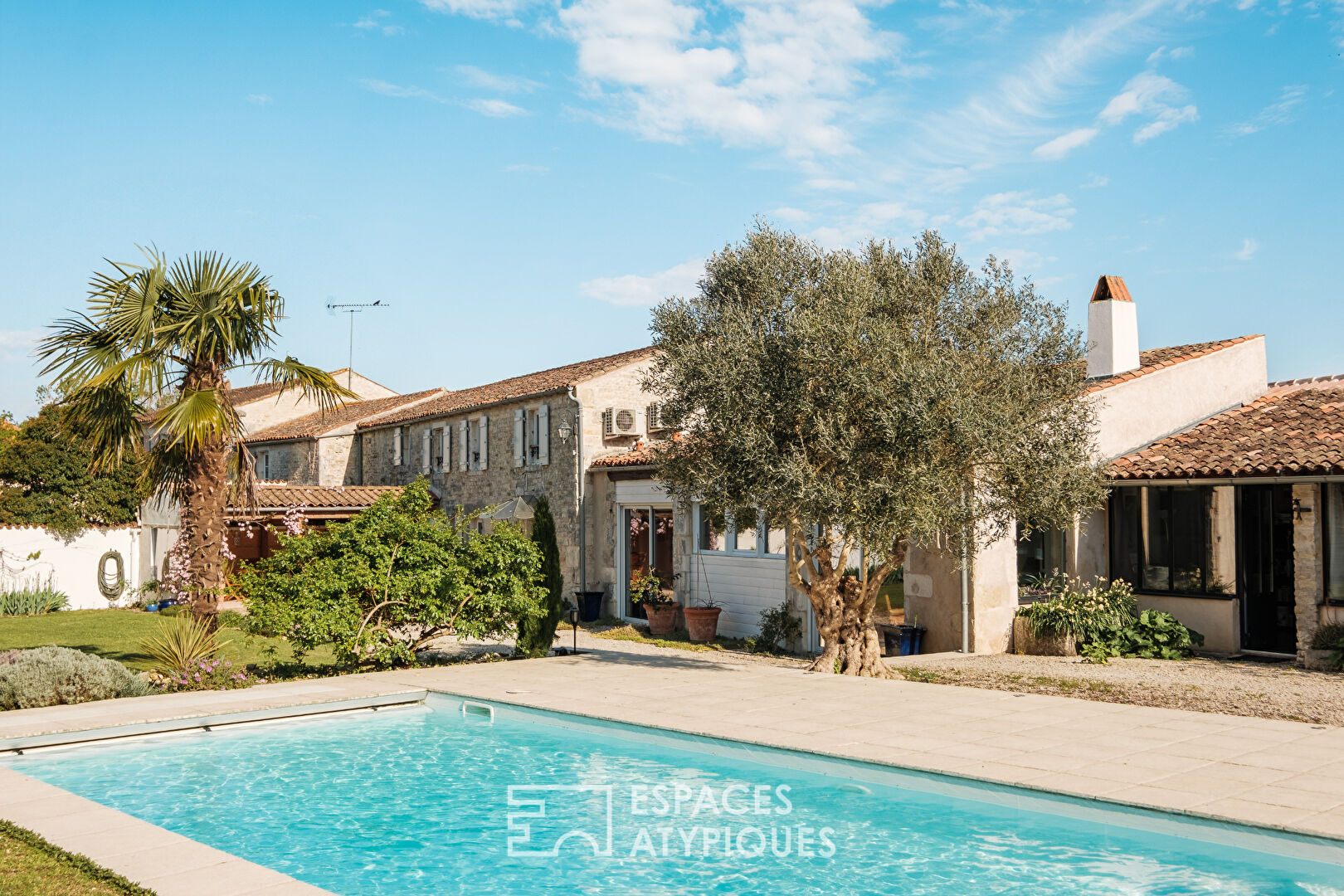 Located in La Jarrie, in the heart of the village while maintaining great tranquility, this authentic Charentaise house offers approximately 198 m2 of living space on a landscaped plot of over 1,200 m2.