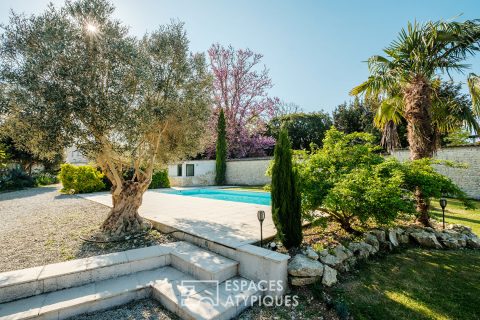 The heated swimming pool blends harmoniously into the green environment. The covered and beautifully flowered terrace is ideal for large tables. The property also has several closed garages and outdoor parking spaces. In the immediate vicinity of shops, schools and services, the house benefits from a sought-after location, combining comfort of life and accessibility.