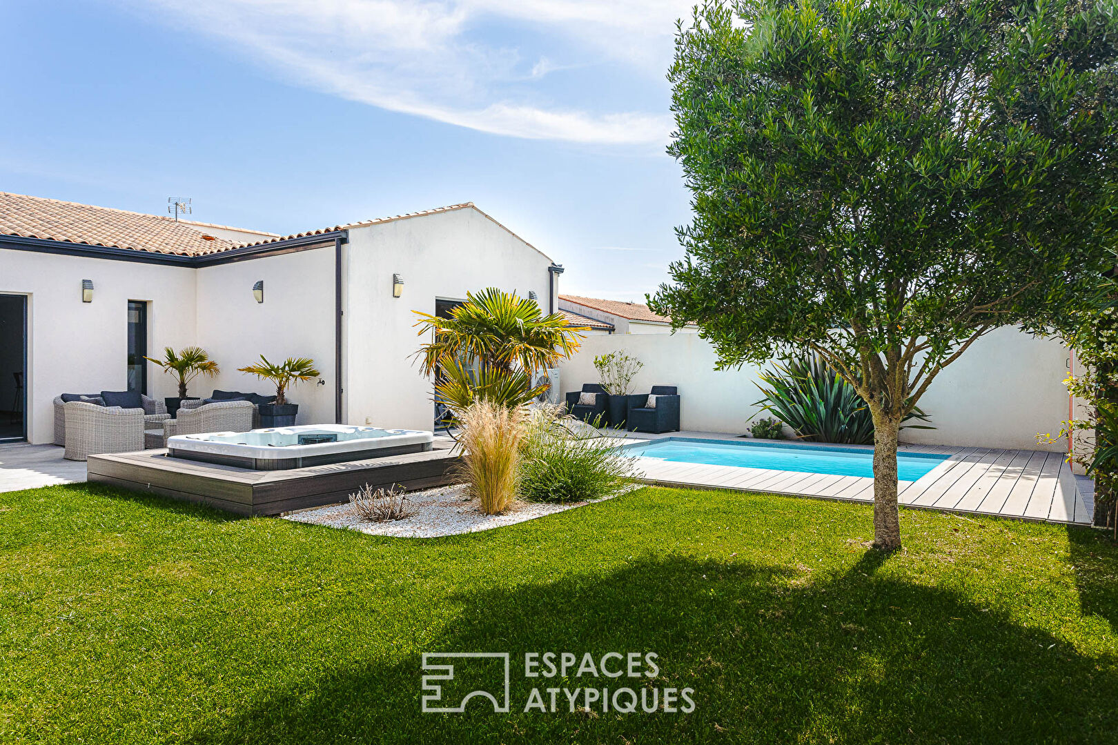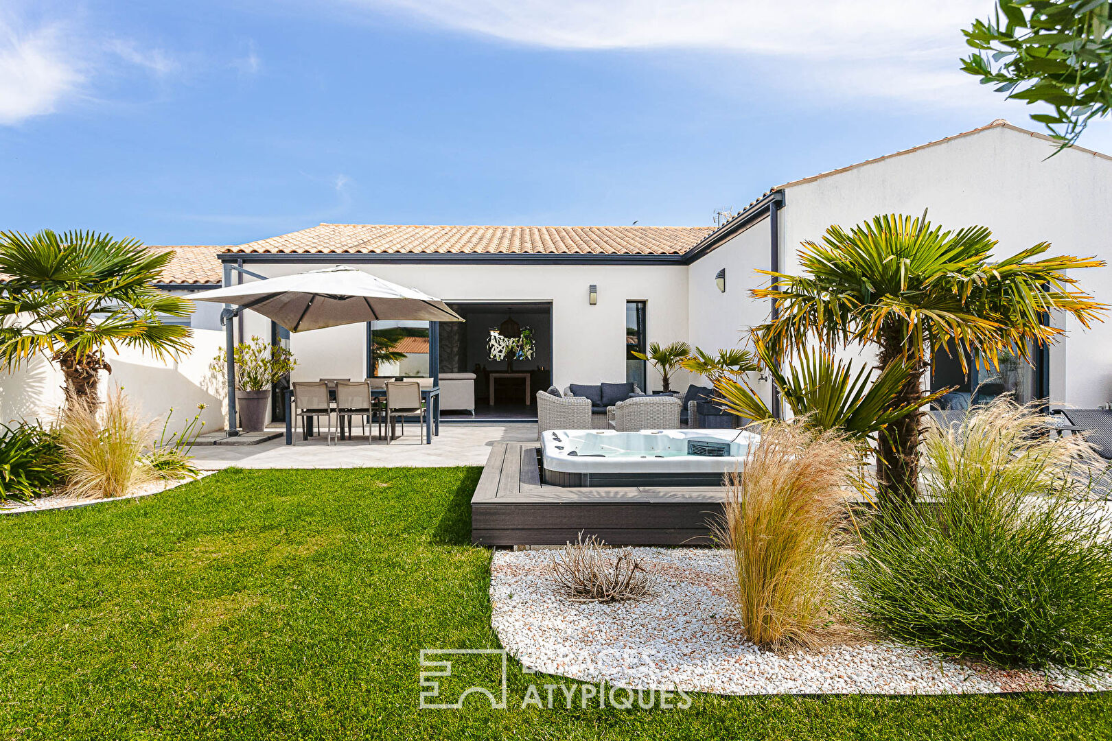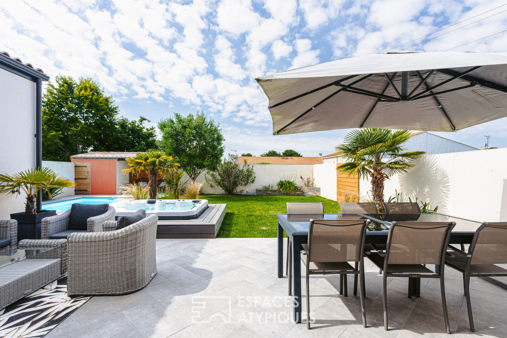 Completely enclosed by walls and perfectly exposed, the landscaped garden is the real meeting point of the house to enjoy the swimming pool and the five-seater spa out of sight. A storeroom, a garage and a technical room complete the assets of this property.