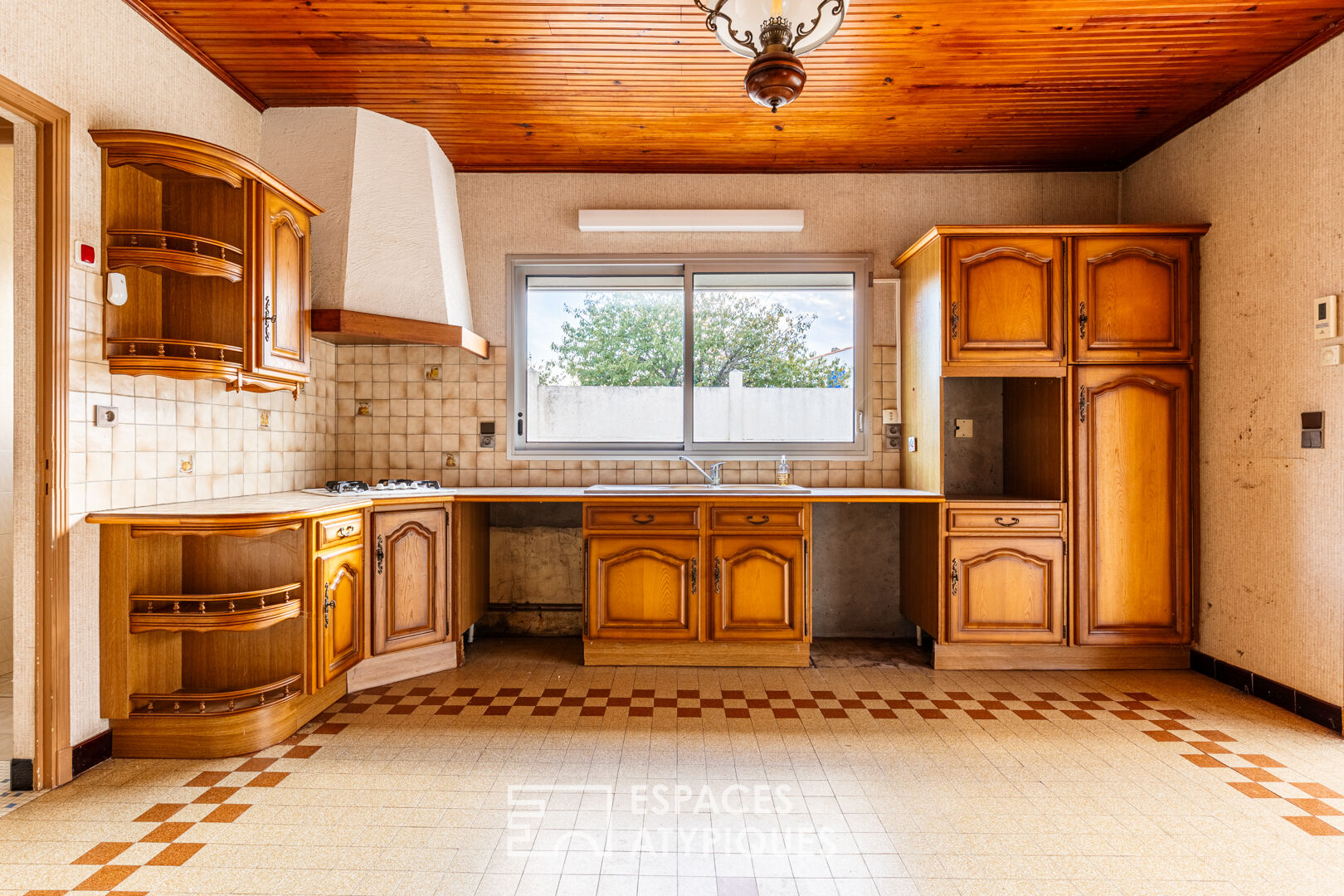 Located on the west coast of the Island in the town of Saint-Pierre, this property located on a plot of more than 1150 m2 in La Cotinière offers shops and the beach within walking distance with its fishing port in all seasons. Built in the 70s by the grandparents, the villa which is in the center of the plot and set back from the road, benefits from two front and rear gardens with various outbuildings that could be converted.