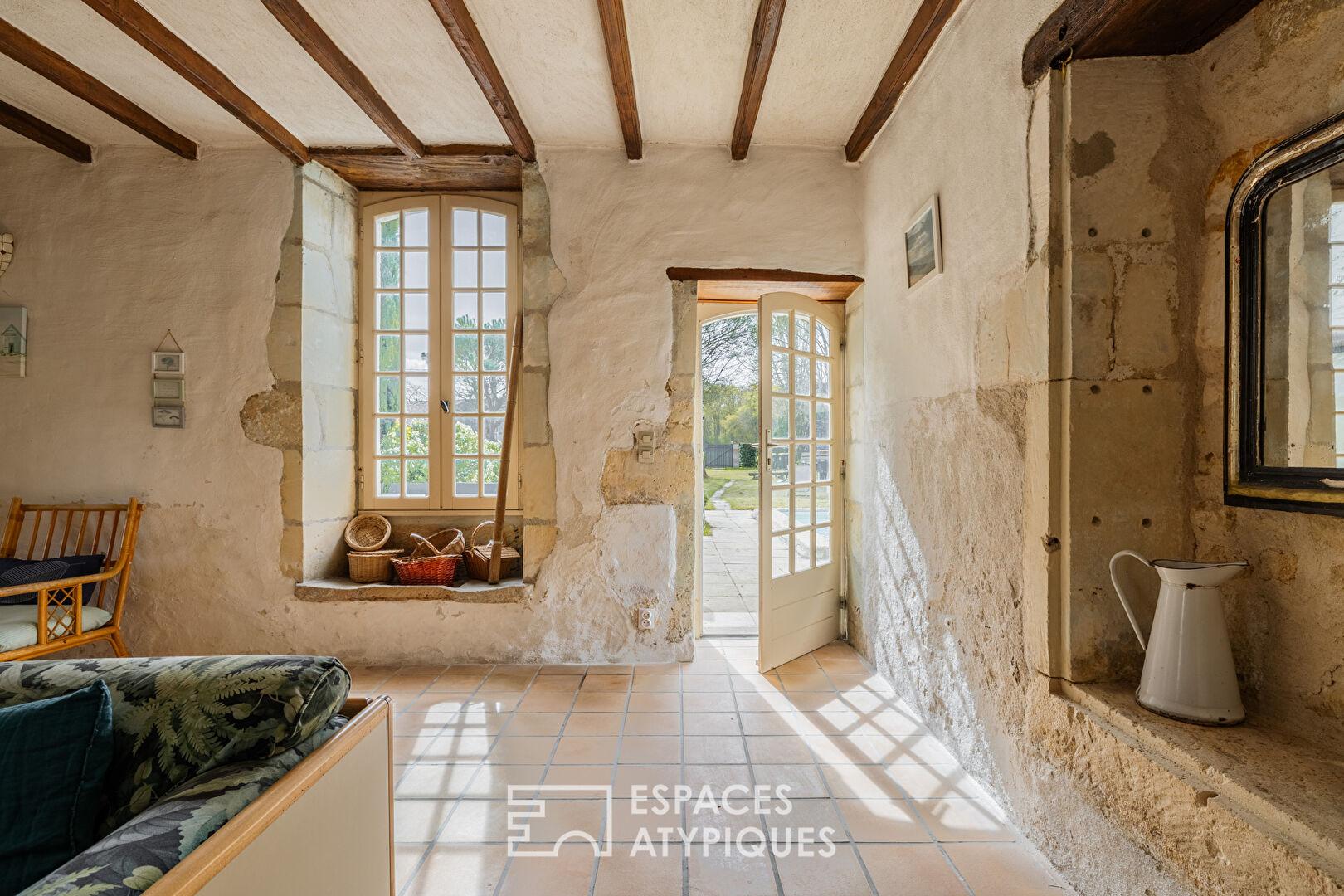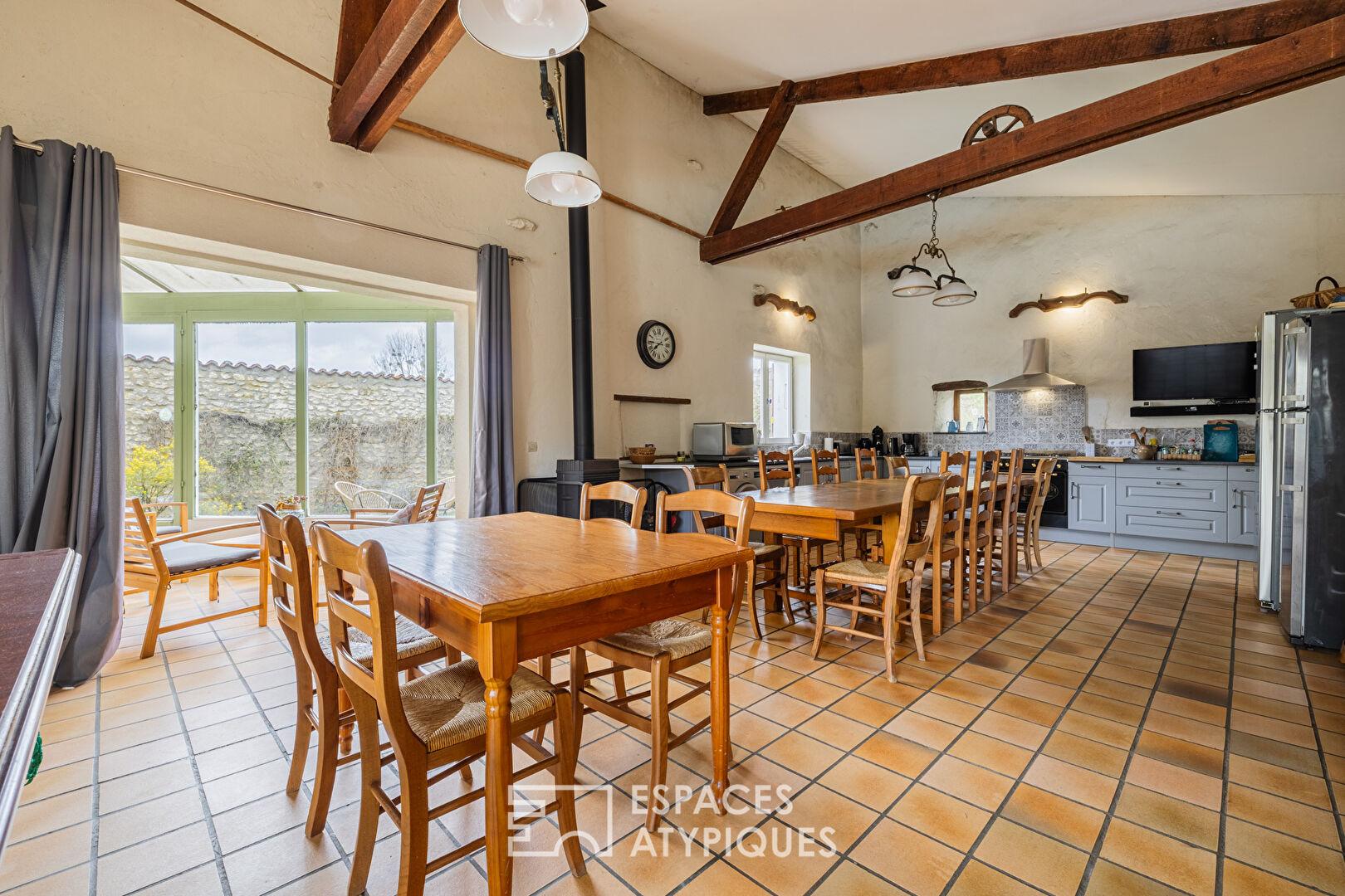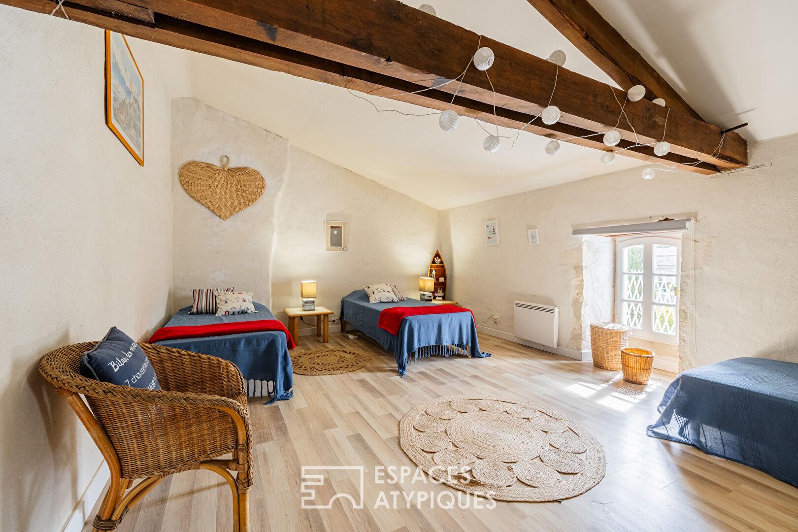 A true haven of character, the property comprises two old stone houses, whose authentic charm has been carefully preserved. The main house, a spacious Charentaise farmhouse, impresses with its generous proportions. Designed for hospitality, it is currently divided into two separate sections that could be combined.