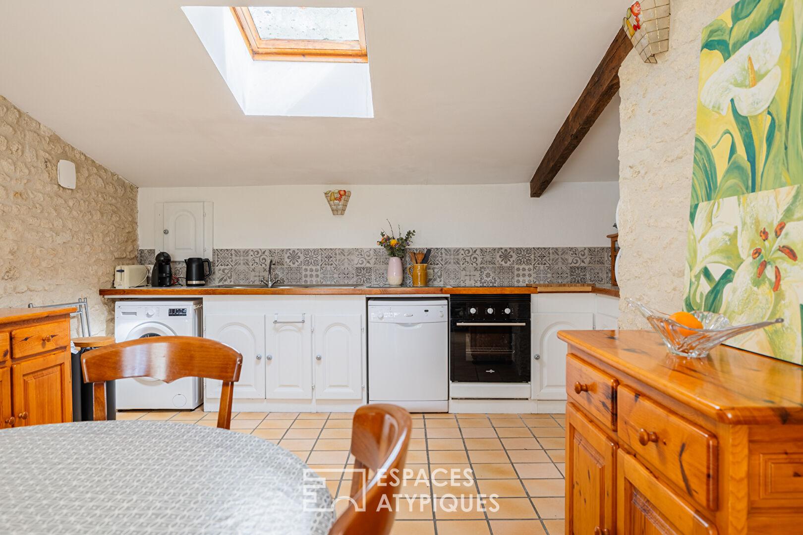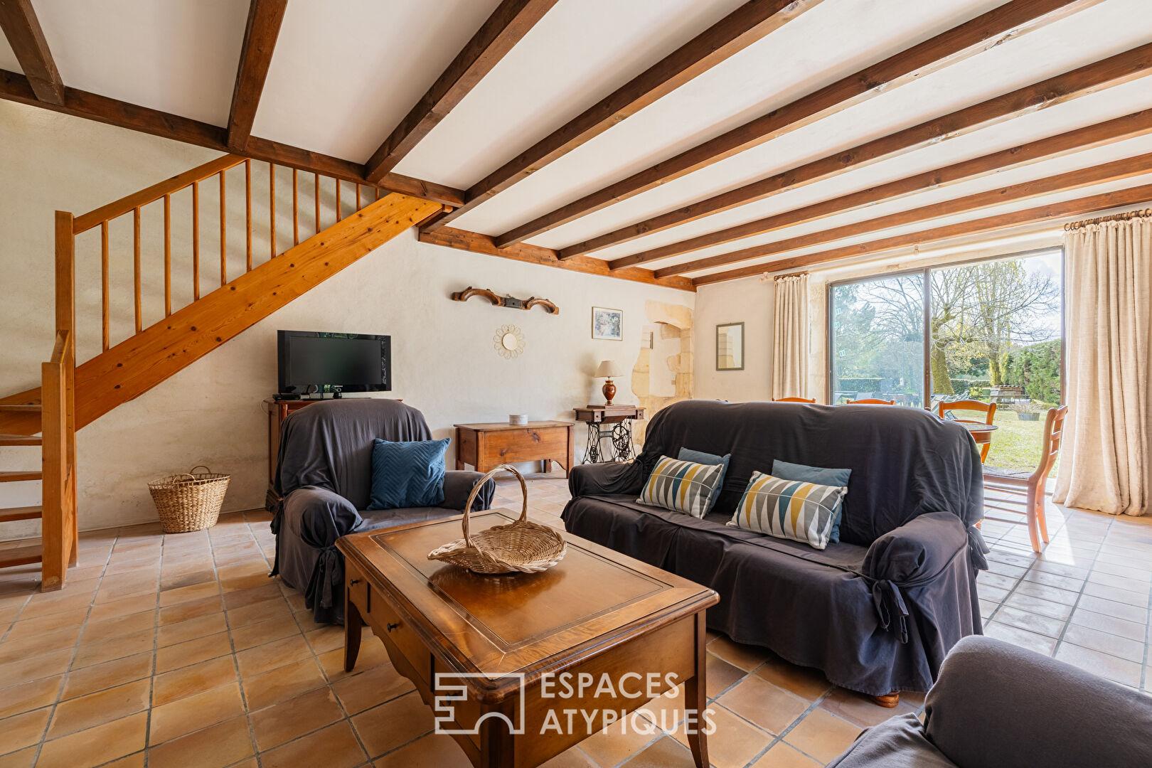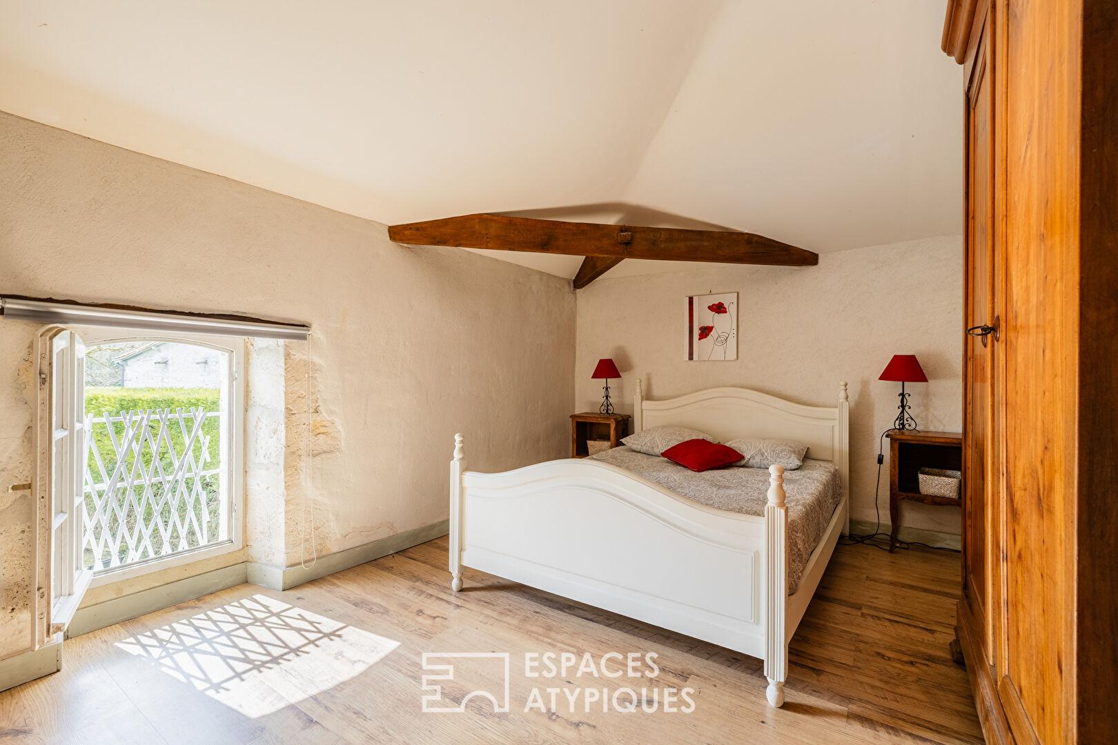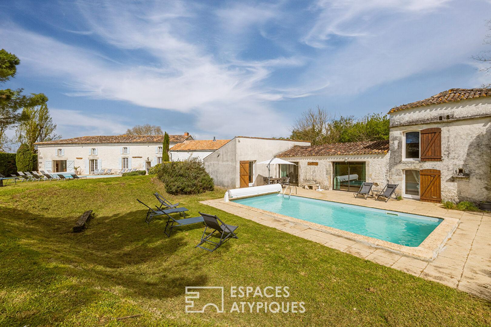 A true haven of character, the property comprises two old stone houses, whose authentic charm has been carefully preserved. The main house, a spacious Charentaise farmhouse, impresses with its generous proportions. Designed for hospitality, it is currently divided into two separate sections that could be combined.