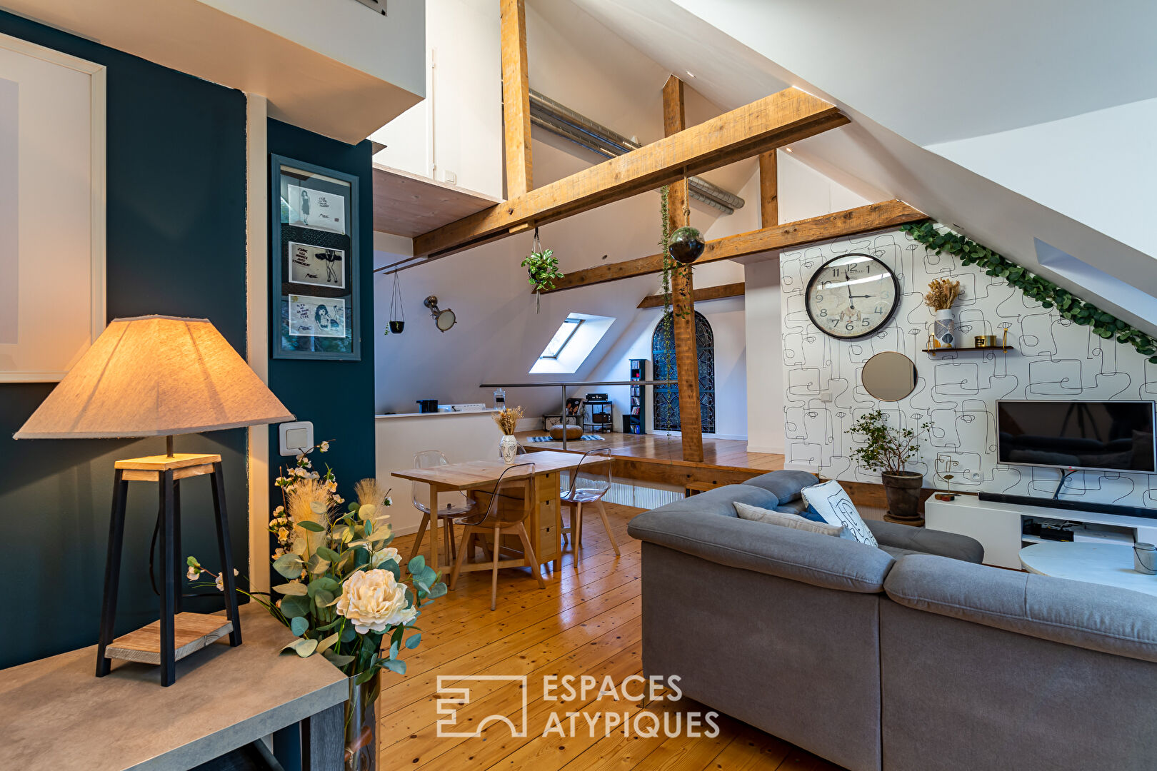 Located just 25 kilometers south of SAINT-BRIEUC and 20 minutes from Lamballe in a medieval city of Moncontour, this former stained glass workshop and redevelopment into an urban loft. Captured by large bay windows, natural light is essential in the huge living room of 100 m2 unified by a raw concrete floor. A workshop in its glass cage fits perfectly into the industrial-style living room and kitchen. a laundry room and wc complete this level. In the middle of this room, sits a stove that preserves the warm spirit of the place. This large tray with beautiful volumes is ideal for a home, but can also be suitable for a Showroom, a workshop, an art lover, the creation of a coworking space. A staircase gives us access to a second living room with suspended terrace, a fitted and equipped kitchen, three bedrooms. A bathroom with a unique room lit by a 130-year-old stained glass window gives it an incredible atmosphere. Laundry room and wc Outside but communicating with the house, a garage for one vehicle. Garden and terrace Lamballe train station 19 minutes away Shops 3 minutes away Schools 3 minutes away ENERGY CLASS: C CLIMATE CLASS: A Estimated average amount of annual energy expenditure for standard use, based on the energy prices of the year 2021: between 1190 and 1660 euros