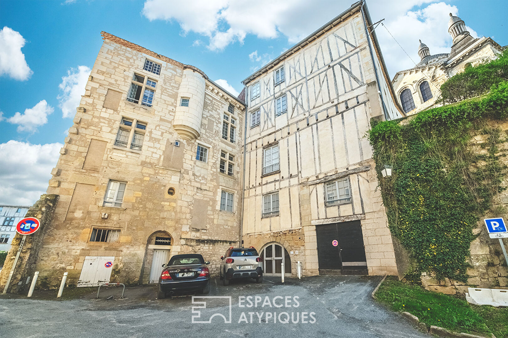 The living room is built around a stone wall of the most beautiful effect, bringing the centuries-old touch as a reminder of its history. A fully equipped kitchen open to the living room is just waiting for its future cordon bleu unless the many restaurants in the city center find favor with you!
