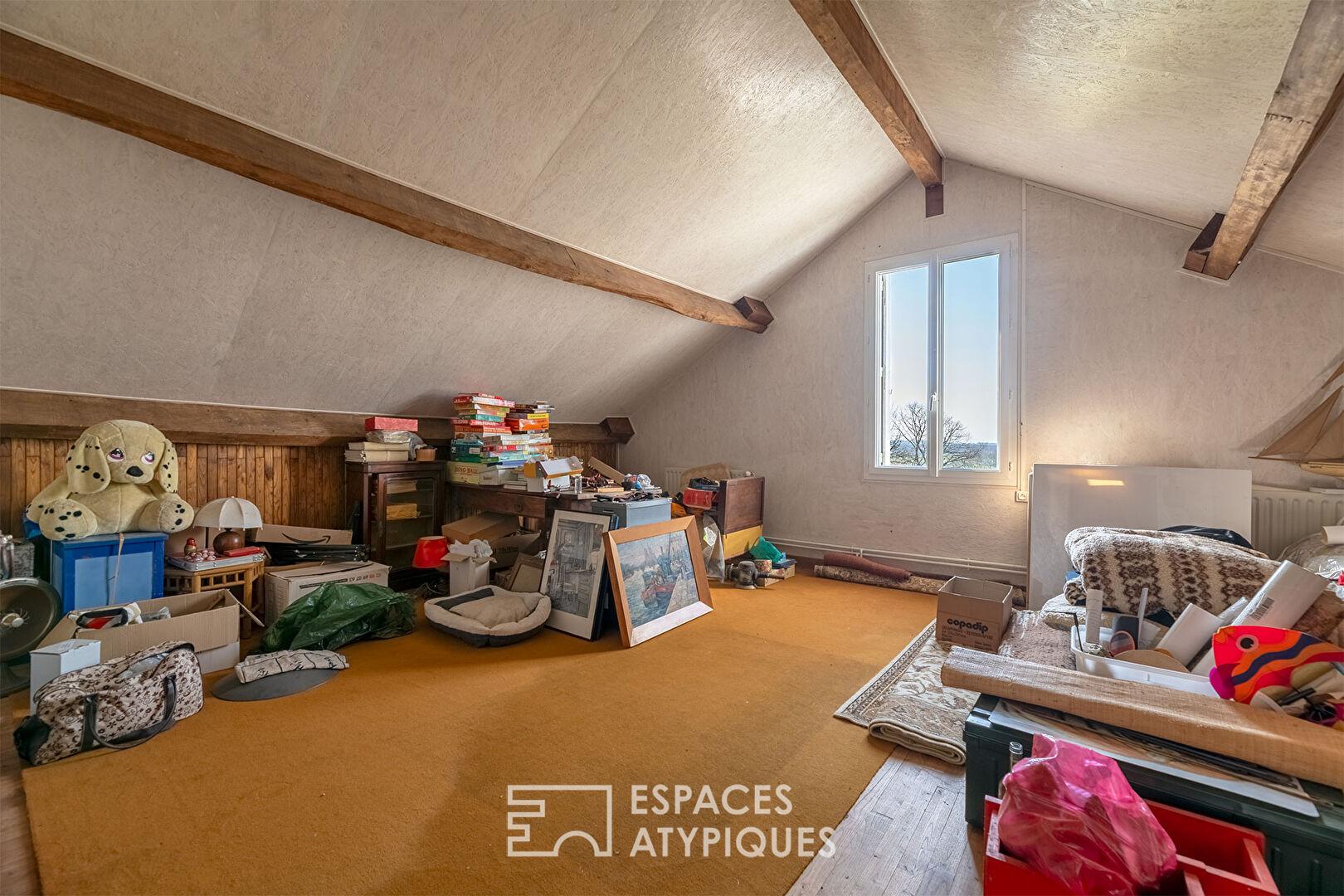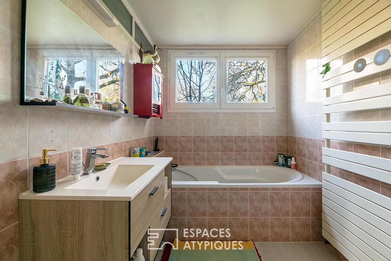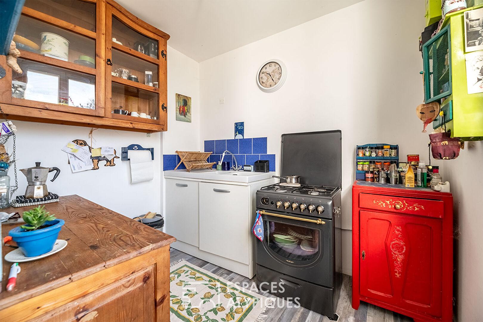 It’s the perfect place to simmer delicious meals while listening to jazz. You find a first bedroom; the waltz of the parquet floors is danced here on the ground floor.
