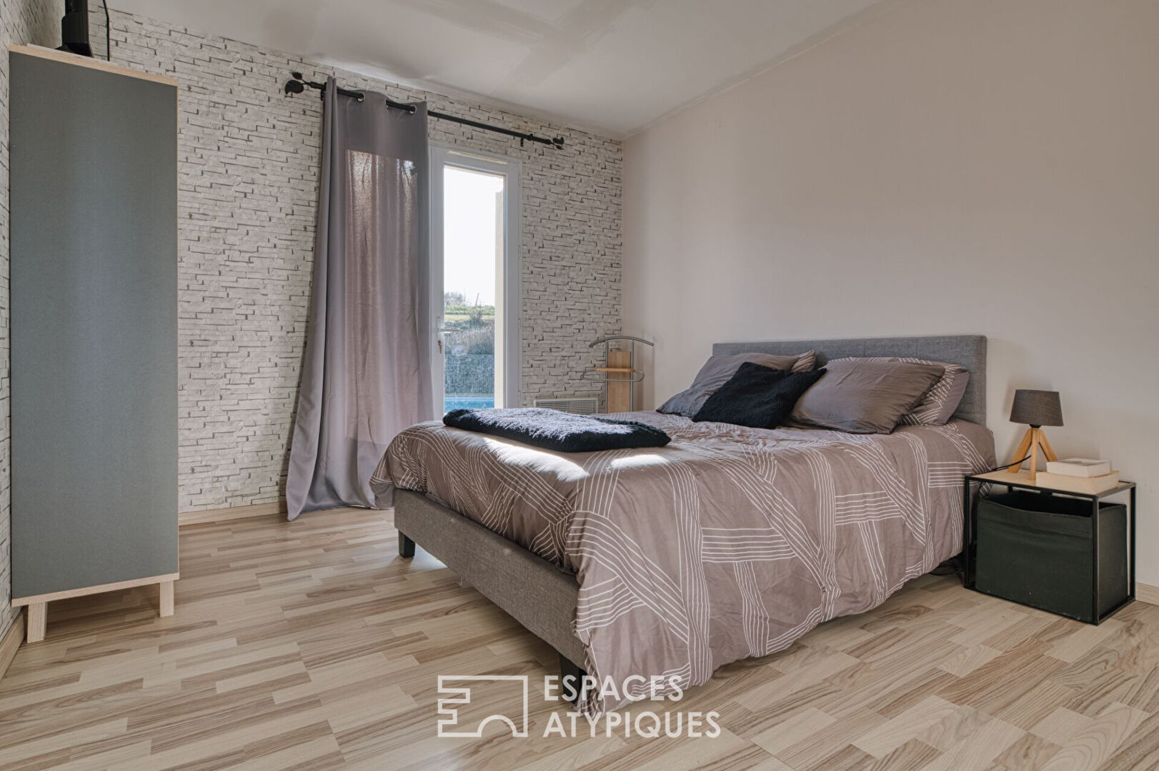 It is in the heart of the village of Blis-et-Born, assimilated to the castellany of Auberoche in the 14th century and today attached to the commune of Bassillac, that this contemporary was built, overlooking the surrounding countryside and in a privileged residential area.