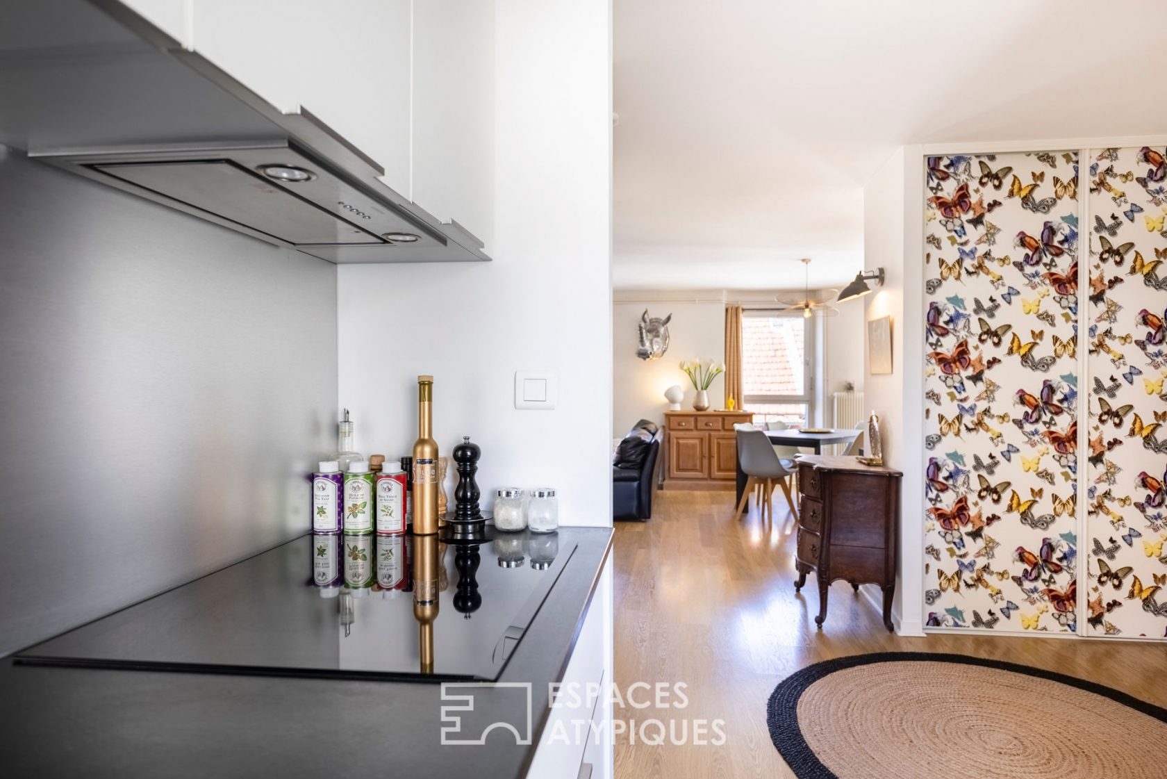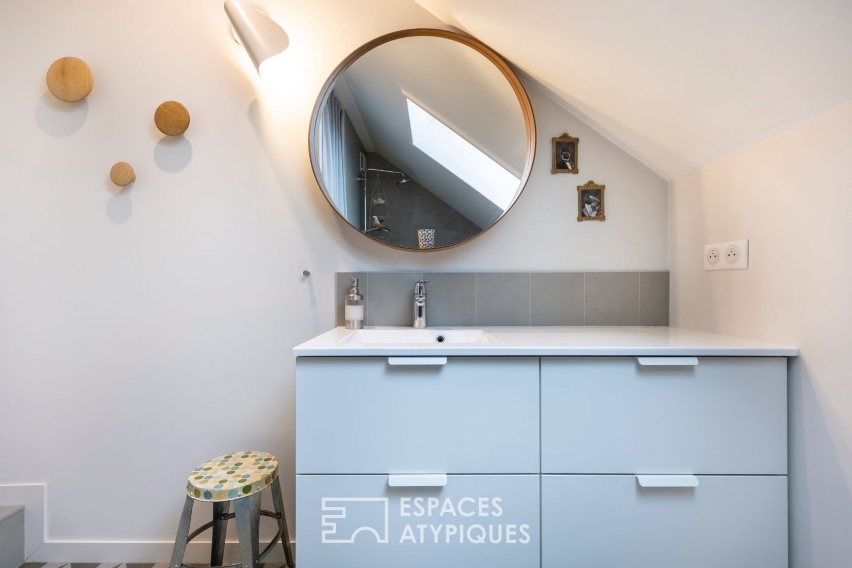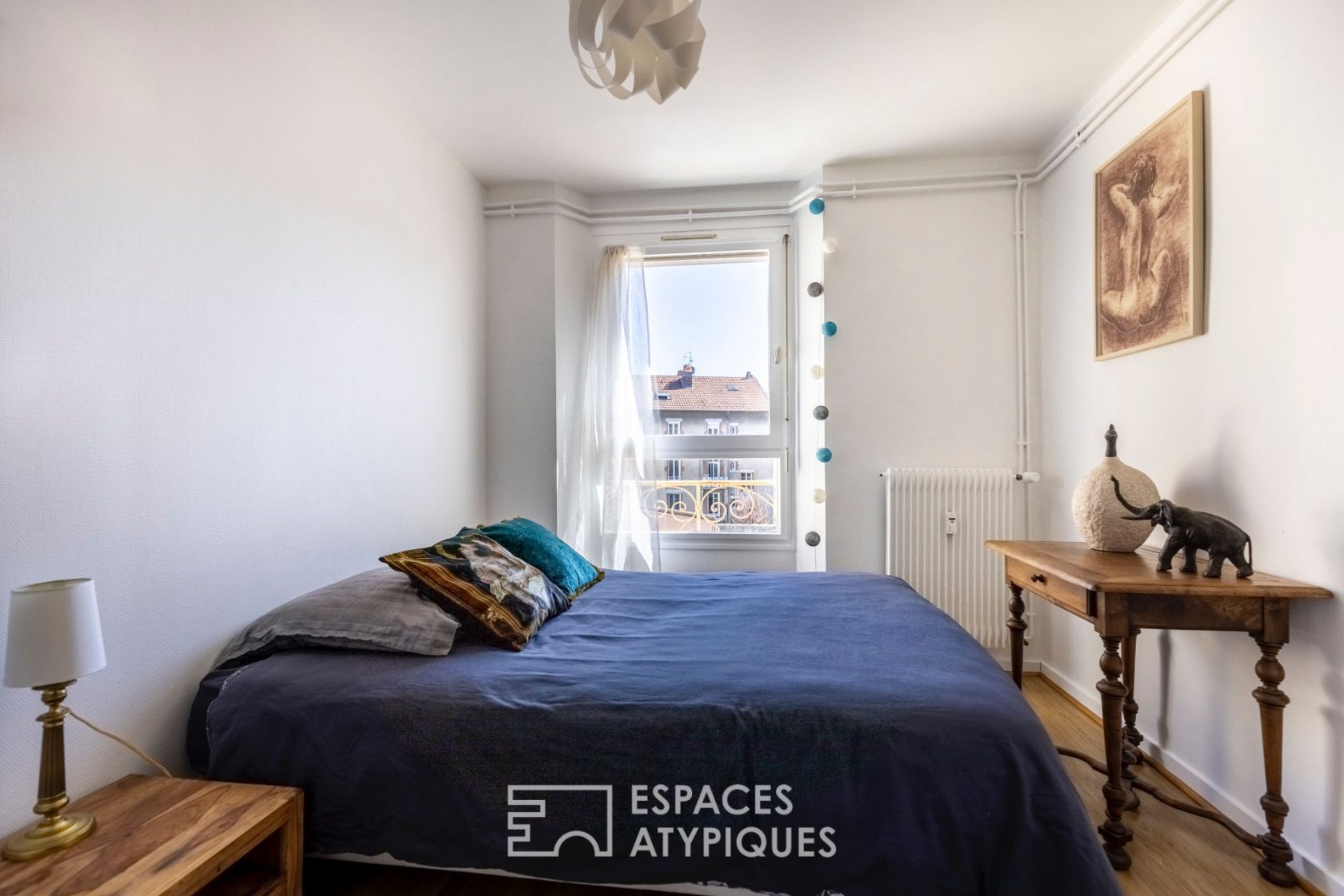 Located in Besançon, in the quiet rue de Villas, this 108 m² (77m² carrez) duplex apartment, takes place on the 2nd and last floor of a small building.