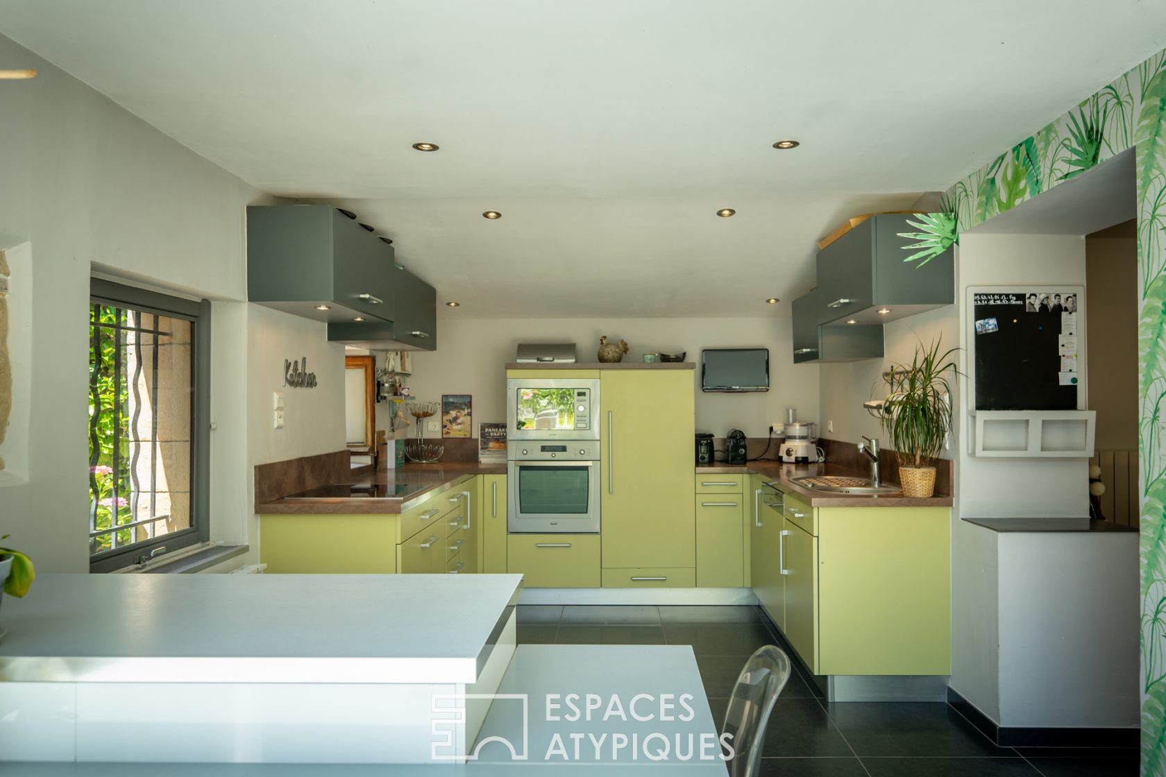 Less than 15 km (9 miles) from the train stations (TGV or Valence town centre), close to local shops and a college, this traditional stone house, which has been completely renovated, stands in a rare protected area. No noise or visual nuisance to mar the peace and quiet of the place.
