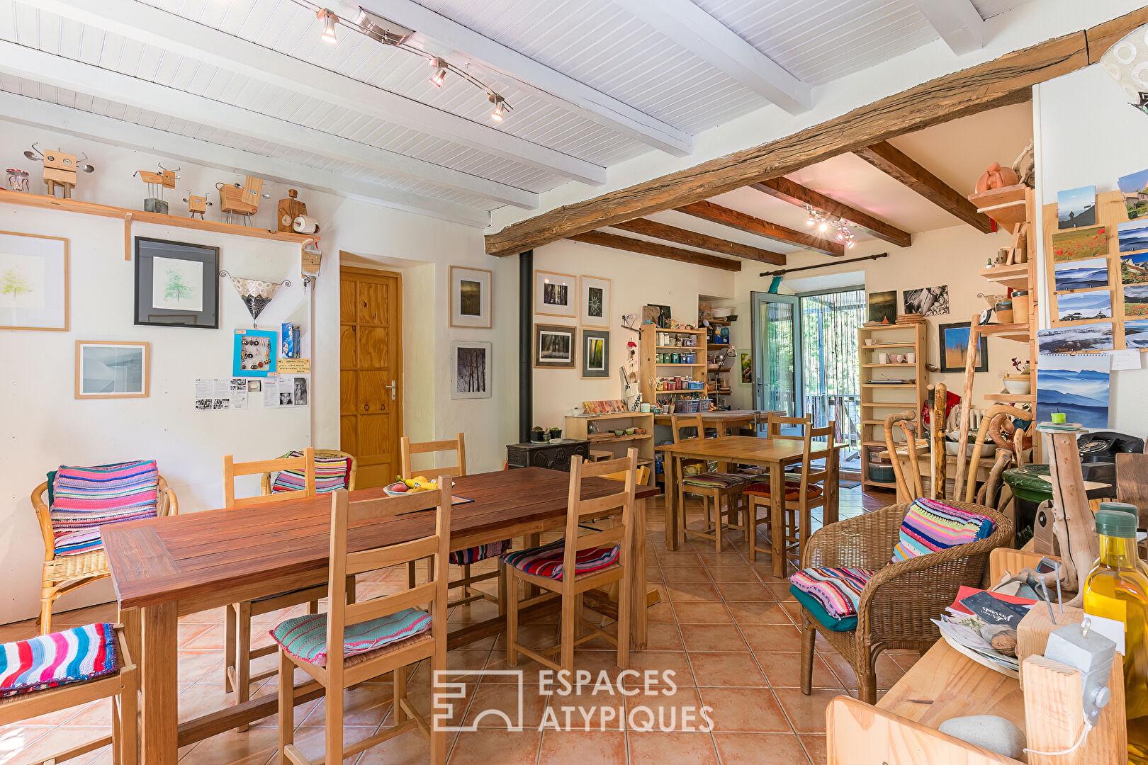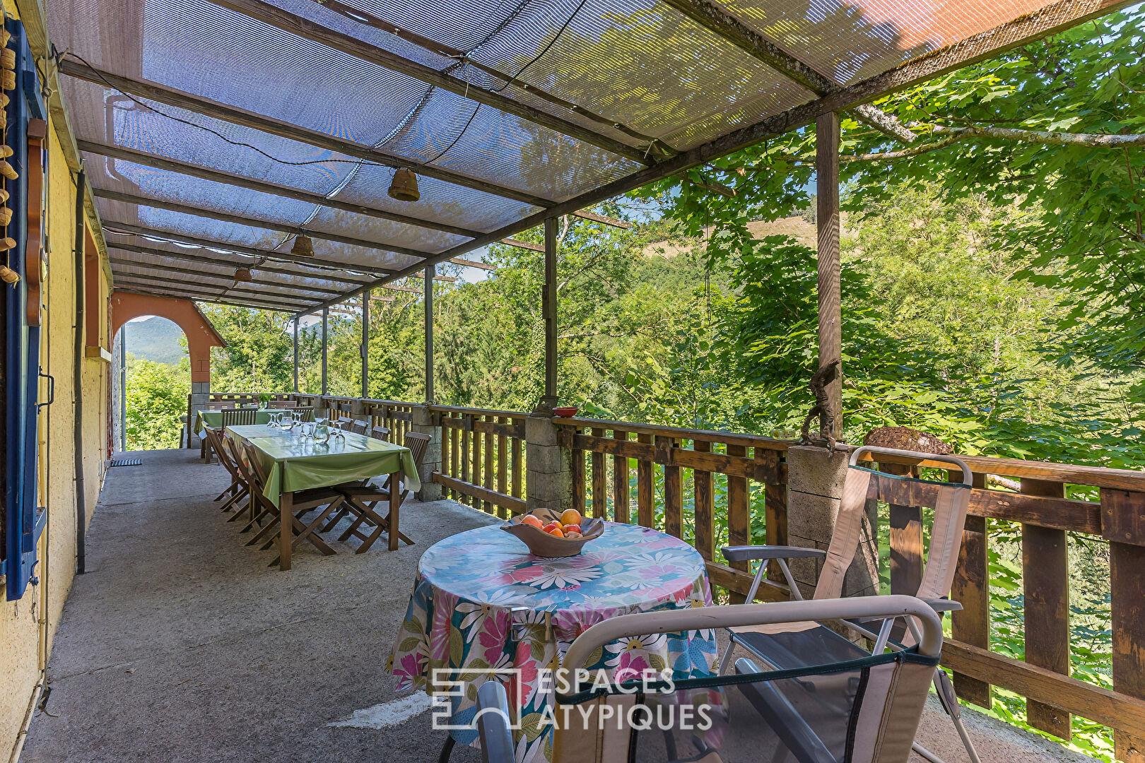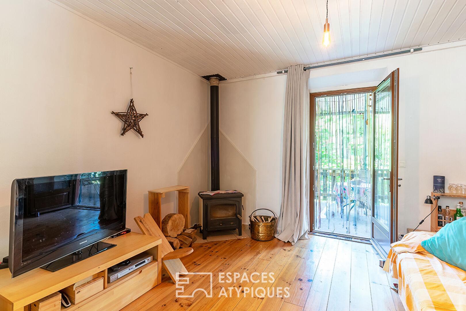 The main house, thoughtfully laid out, includes a lovely kitchen, a bright living room, and three bedrooms upstairs. An attic offers potential for conversion or further development to suit your needs. Outside, a large terrace overlooks a verdant plot of nearly one hectare, perfect for enjoying sunny days or hosting al fresco meals.