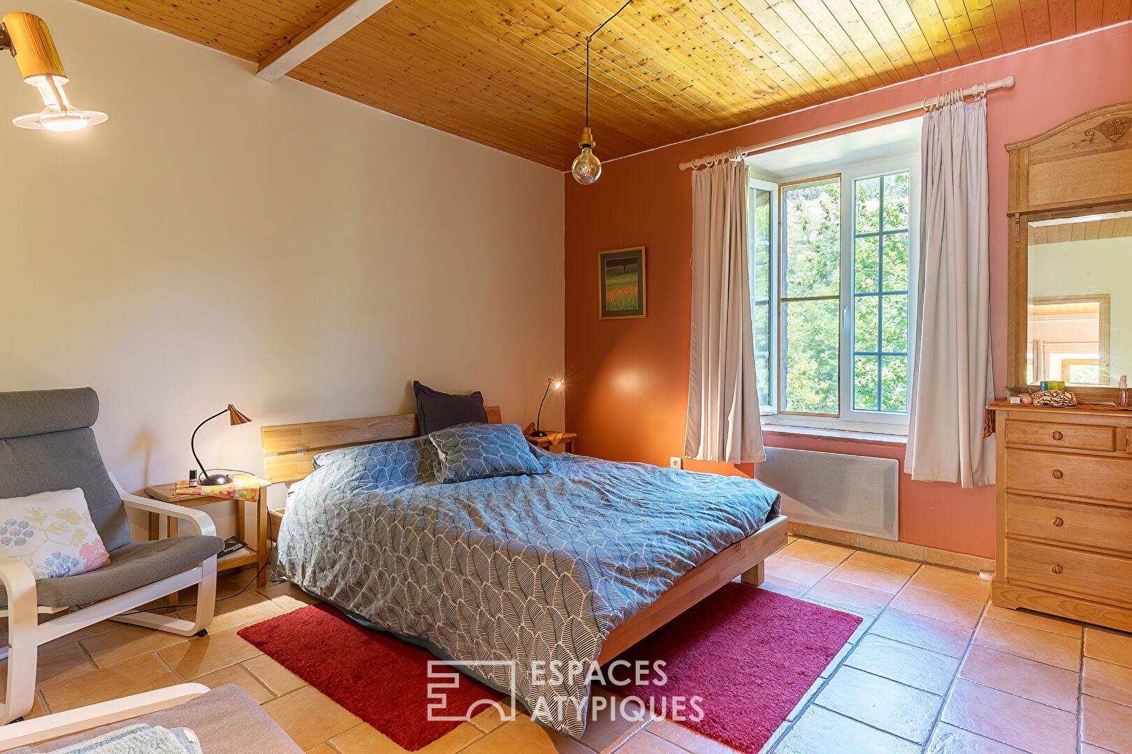 The property is bisected by the La Sure river, which offers several pools perfect for cooling off on hot summer days. In addition, a natural campsite with nine pitches connected to electricity, complete with sanitary facilities and a summer kitchen, presents an exceptional opportunity for nature lovers and those seeking a place to stay. A chalet of approximately 40sqm with a kitchen, bedroom, and bathroom completes the property. This unique property in Saint-Julien-en-Quint represents a rare opportunity to acquire a property combining comfortable living space with strong potential for hosting guests.