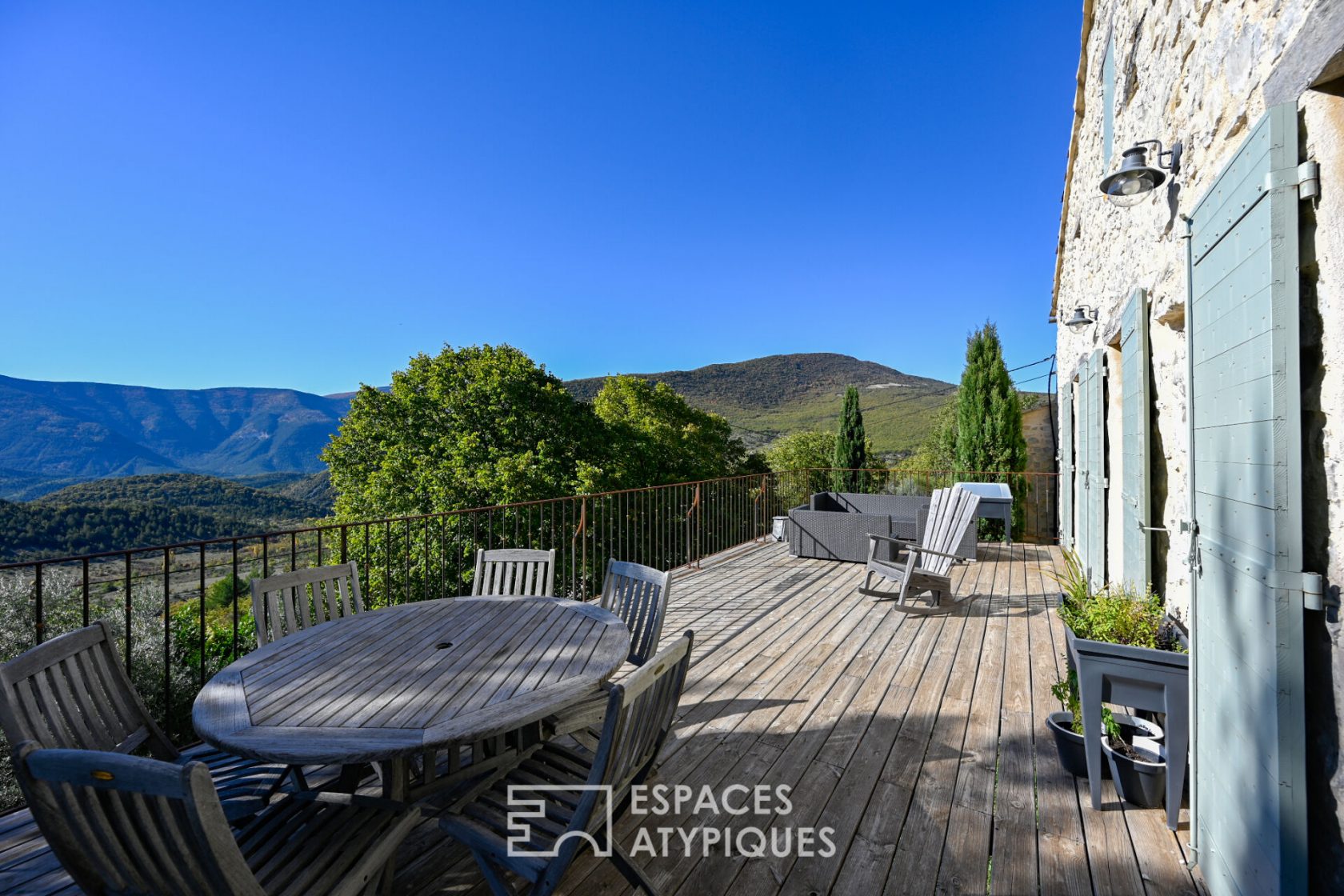 It is near Montbrun-les-Bains, a magnificent village perched in the land of Giono, between the ancestral Baronnies and the Mont-Ventoux, where springs, fountains and old stones rival in charm, it is at the bend of a small road, and after 600 m of road, that this 18th century hamlet, elegantly renovated, offers itself.