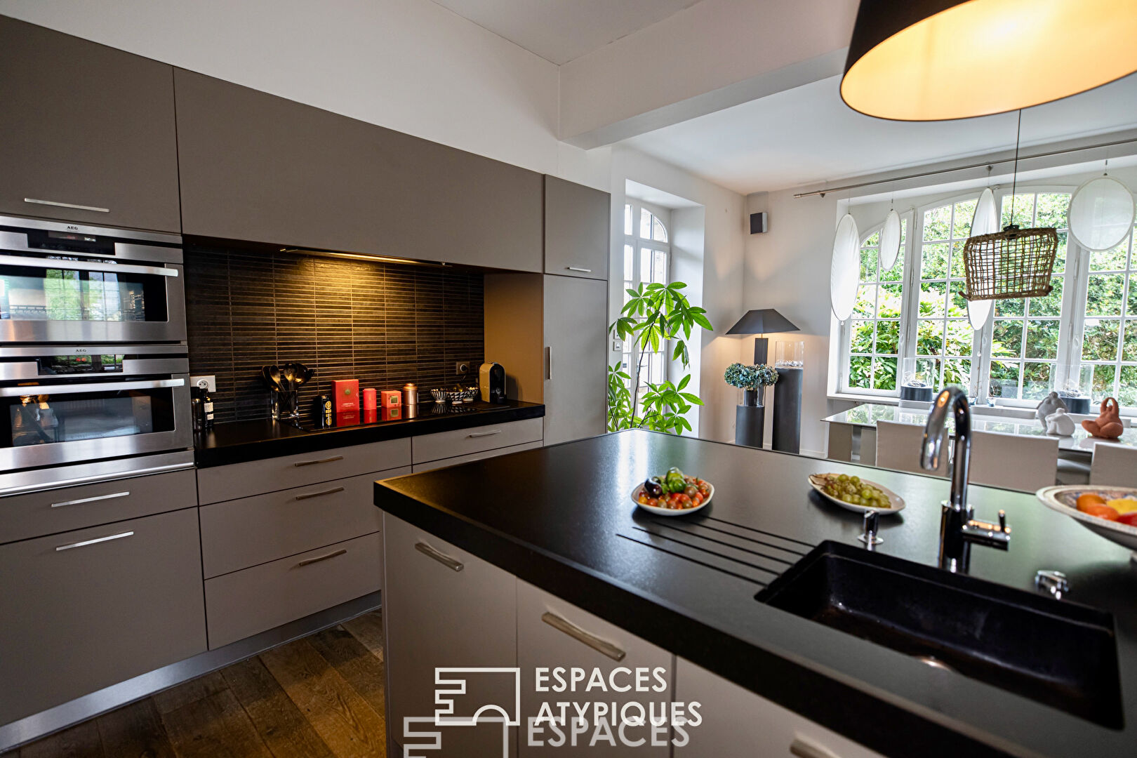 Ideally located in the town of Landivisiau, this residence, perfectly suited to family life, offers you a bubble of serenity combining pleasure and comfort. One experiences here the feeling of being far from everything, away from the world, although the property is located only a few minutes walk from amenities and transport. This captivating and charming 1930s stone house, discreetly nestled in a quiet area and not overlooked, deploys all its charms through its 230 sqm of living space on two levels. Its triple exposure and high ceilings give it a warm atmosphere at any time of day or year. The property is revealed at the end of a tree-lined driveway, as soon as you arrive at the premises, the surprise is significant! We are literally under the spell of this majestic stone building which has been subtly renovated in depth. A flight of steps gives access to the house via a large porch with a terrace with its noble entrance. The wonder continues once the door is crossed, the place is enchanting, imbued with softness, aesthetics, and refinement. The owners have applied the three golden rules of architecture here: light, space and functionality. The marriage of the old with the contemporary is particularly successful. The large entrance hall serves on the one hand the living space of 75 sqm where the living room, the fitted and equipped kitchen rub shoulders with beautiful workmanship. The open and uncluttered layout of the place communicates a feeling of fluidity, space and light, due to its many openings, and its high ceilings. The decoration, sober and elegant, is marked by light tones, which help to create a soothing atmosphere. It emanates a soft and refined atmosphere. On the other hand, an office, a bedroom and a dressing room complete the ground floor. Upstairs, served by a majestic staircase, is the sleeping area where the generous landing, now converted into a relaxation area, leads to three spacious bedrooms with fitted wardrobes and a bathroom. The vast parental suite, with its bathroom with shower and equipped with a balneotherapy bathtub, takes all its ease in a completely independent space. The sleeping areas are like the rest of the house and offer beautiful volumes and an equally neat decoration. A large basement, including a laundry room, a wine cellar, a double garage, completes the benefits of this property. On the outside, the garden is deliciously flowered and planted with trees. The atmosphere that emanates from it, its many trees, its shaded terrace, the tranquility make it an attractive place, with a real personality. This exceptional property, where you put your suitcases, benefits from immediate proximity to all shops and services. ENERGY CLASS: D / CLIMATE CLASS: D Estimated average amount of annual energy expenditure for standard use, based on energy prices for the year 2021: between EUR1,856 and EUR2,512 Contact: Sandrine 06.22. 26.84.76 RSAC: 852199579 BREST Agency fees: 5% including tax payable by the seller for goods over EUR200,000 Flat rate of EUR10,000 including tax paid by the seller for goods under EUR200,000
