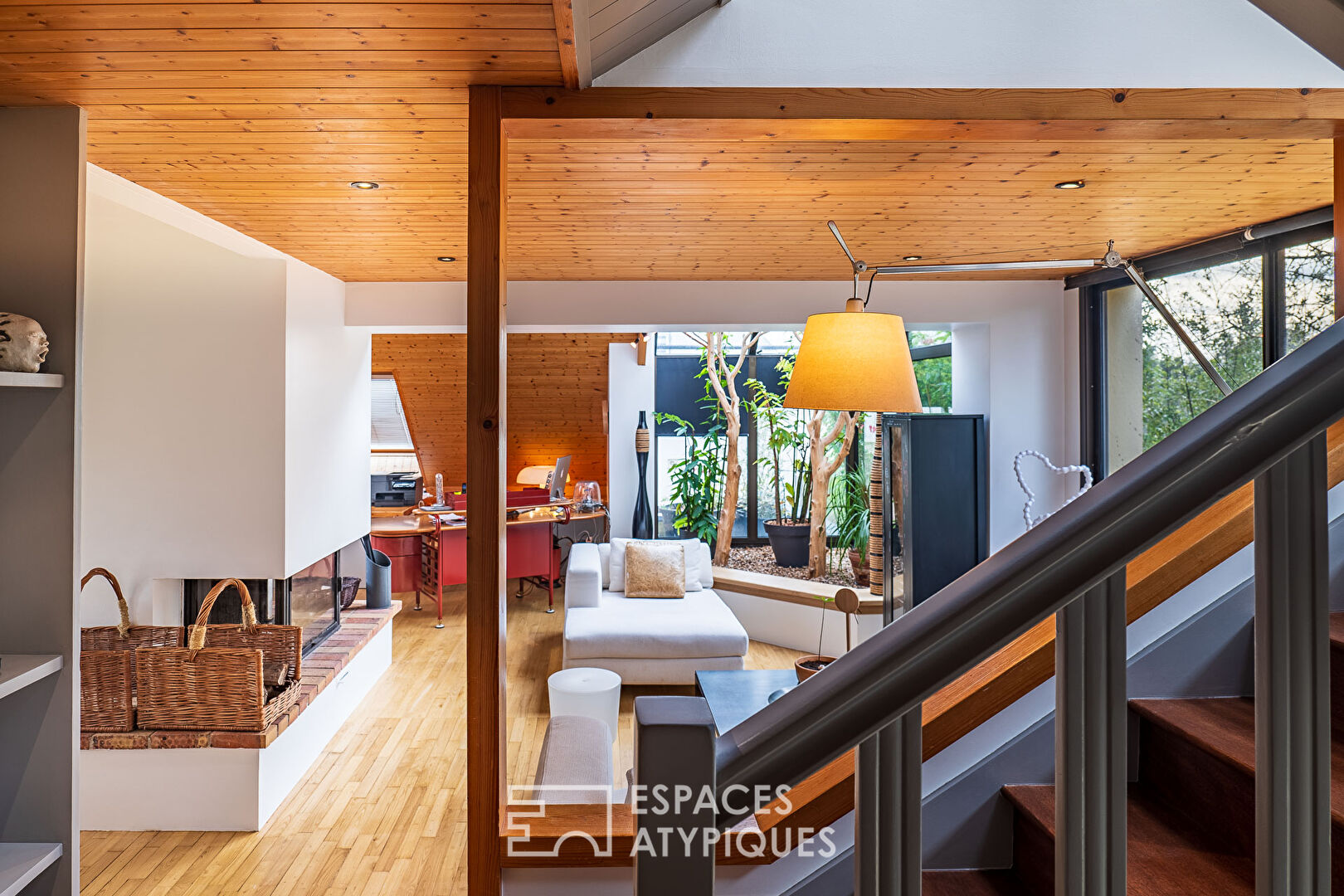 Built in 1969, this residence was meticulously enlarged and restructured in 1992 under the supervision of a renowned architect, to today constitute a property with a contemporary style, with atypical curves and lines. The house, decorated and furnished with the creative richness of an interior designer, brings a touch of originality and refinement to each space. Recently enhanced by a meticulous renovation with top quality materials, the residence is spread over 3 levels.