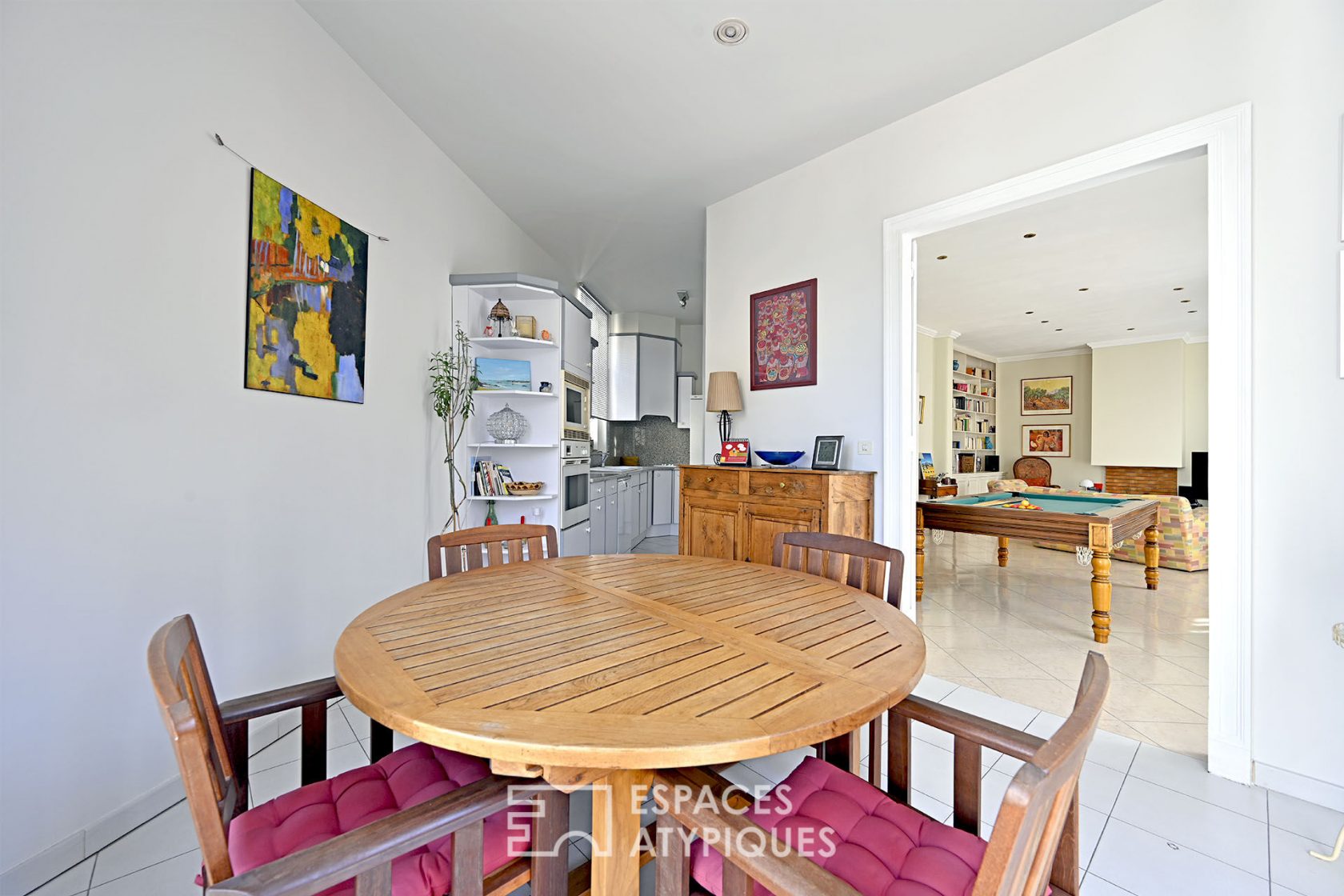 With a bourgeois spirit, the house surprises with the originality of its circulation organized around a magnificent old stone staircase.