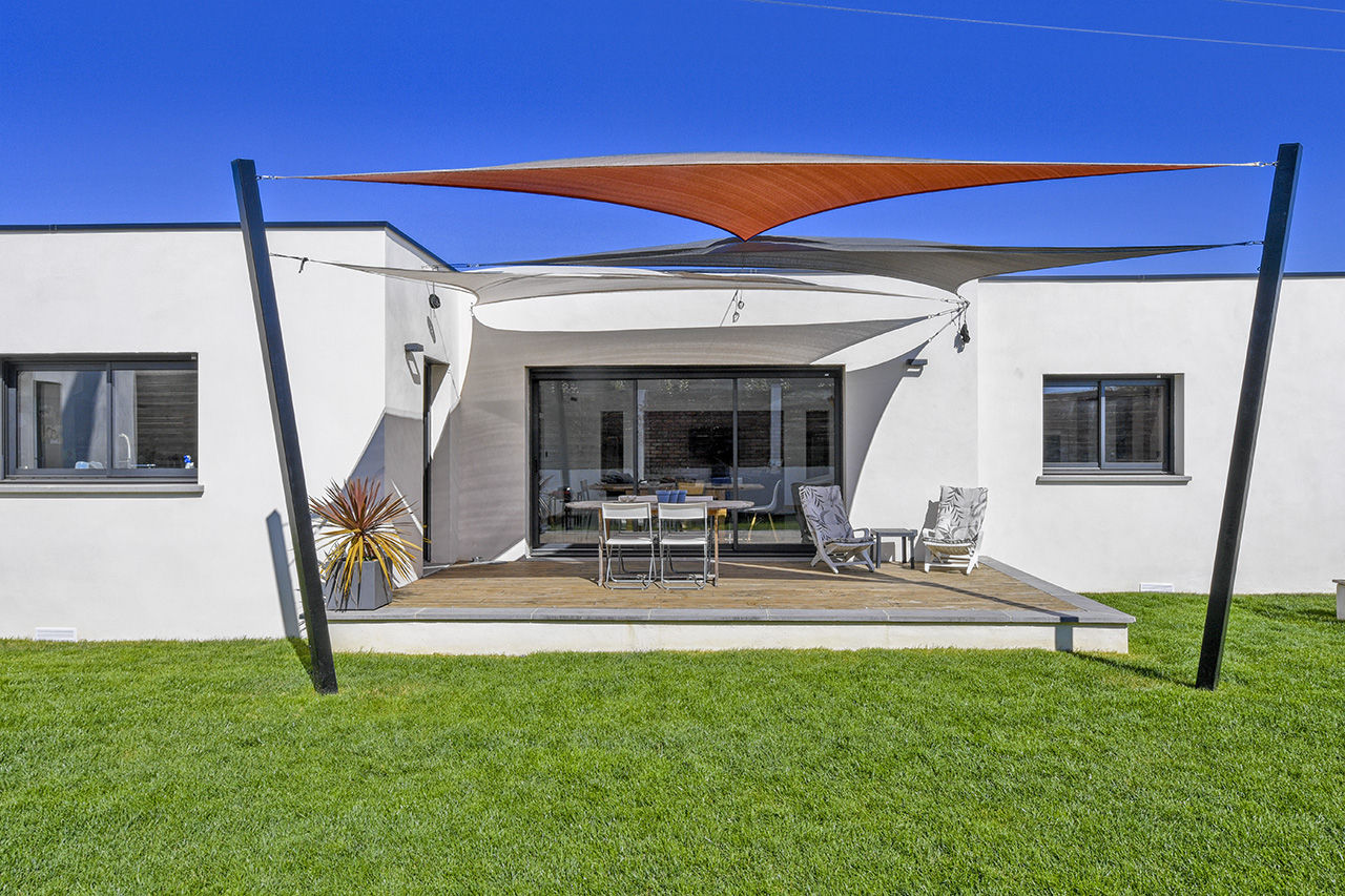 Located a stone’s throw from Alès and 1/2 hour from Nîmes, in the village of Saint Hilaire de Brethmas, this beautiful contemporary bungalow bathed in light develops 160 m2 on a plot of 730 m2. Here, in this protected environment at the edge of the vineyards, nothing was left to chance, each material was carefully chosen. The entrance, where one discovers a vast storage closed by beautiful old doors, gives directly on the space of life of 72 m2. The kitchen is equipped with a large central island very friendly. The living room, facing south, is decorated in the center of a canopy open in the roof, providing a skylight. Anhydrite on the ground and brick walls add an industrial touch to this warm, wood-lined villa. Two separate nights in this house. On one side, 3 beautiful rooms parquetées, with their bathroom. Each of them is closed by a pretty wooden door with brick partition. The large windows open either to the pool or the vineyards. This sleeping area is isolated from the noise by a glazed door with brick partition. On the opposite wing, is the 4th bedroom, the master suite with dressing room and bathroom with an Italian shower. In the privacy of the garden, a secure swimming pool and a wooden terrace with its pergola add the final touch to this place. Terrace, pool and planters have pretty Led lights. Finally, a large garage of 23 m2, offers many possibilities and hosts the laundry. The harmonious volumes of each room, the neat finishes, the tranquility of the place make this family villa a place where you feel good. Contact: Delphine 06 76 60 34 68