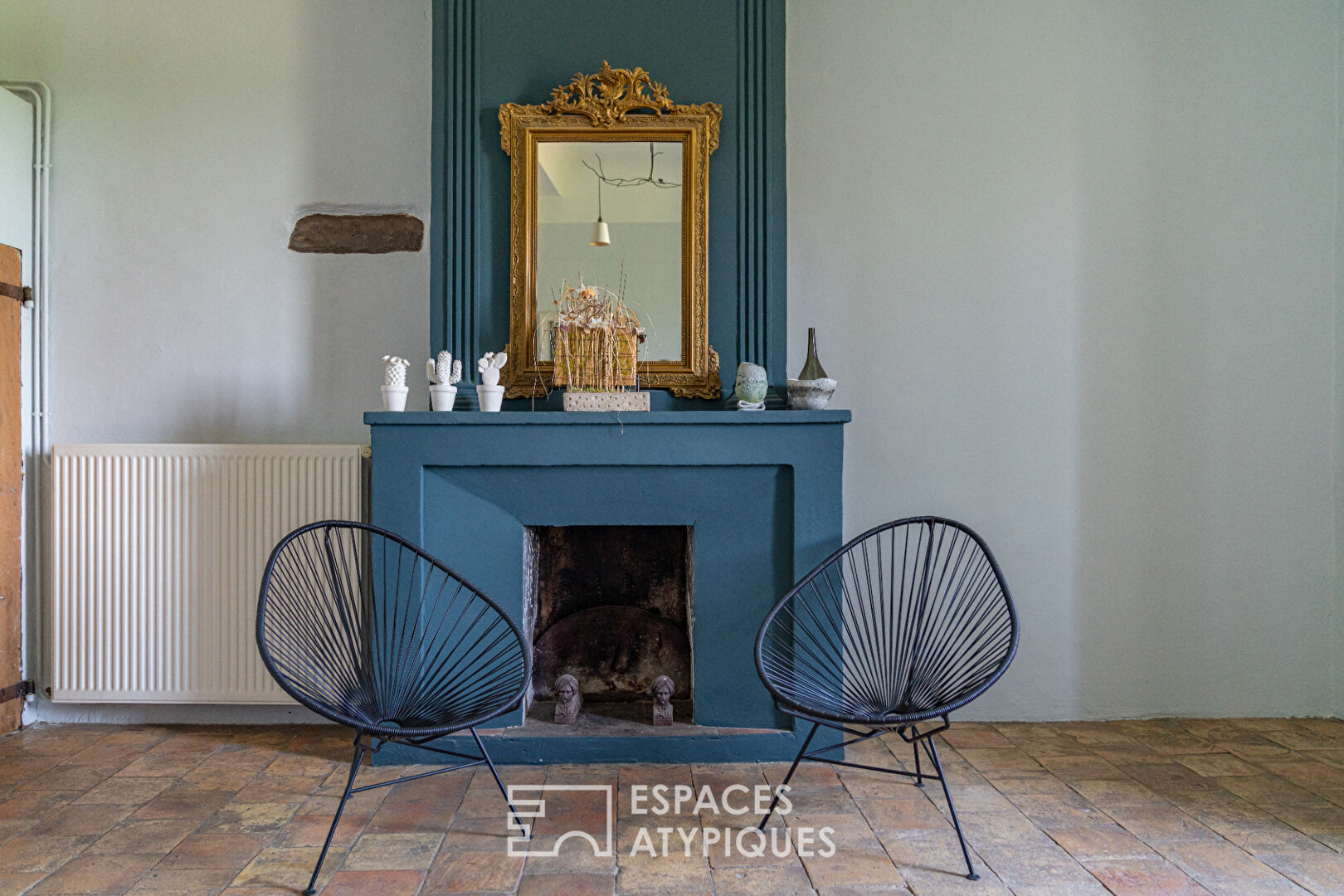 On the ground floor, you will find the living room highlighted with these real cement tiles and its magical fireplace, and also an independent kitchen combining modernity and charm of the old.