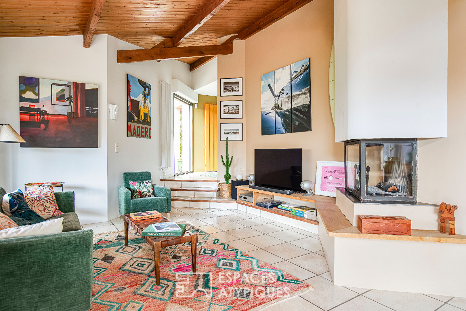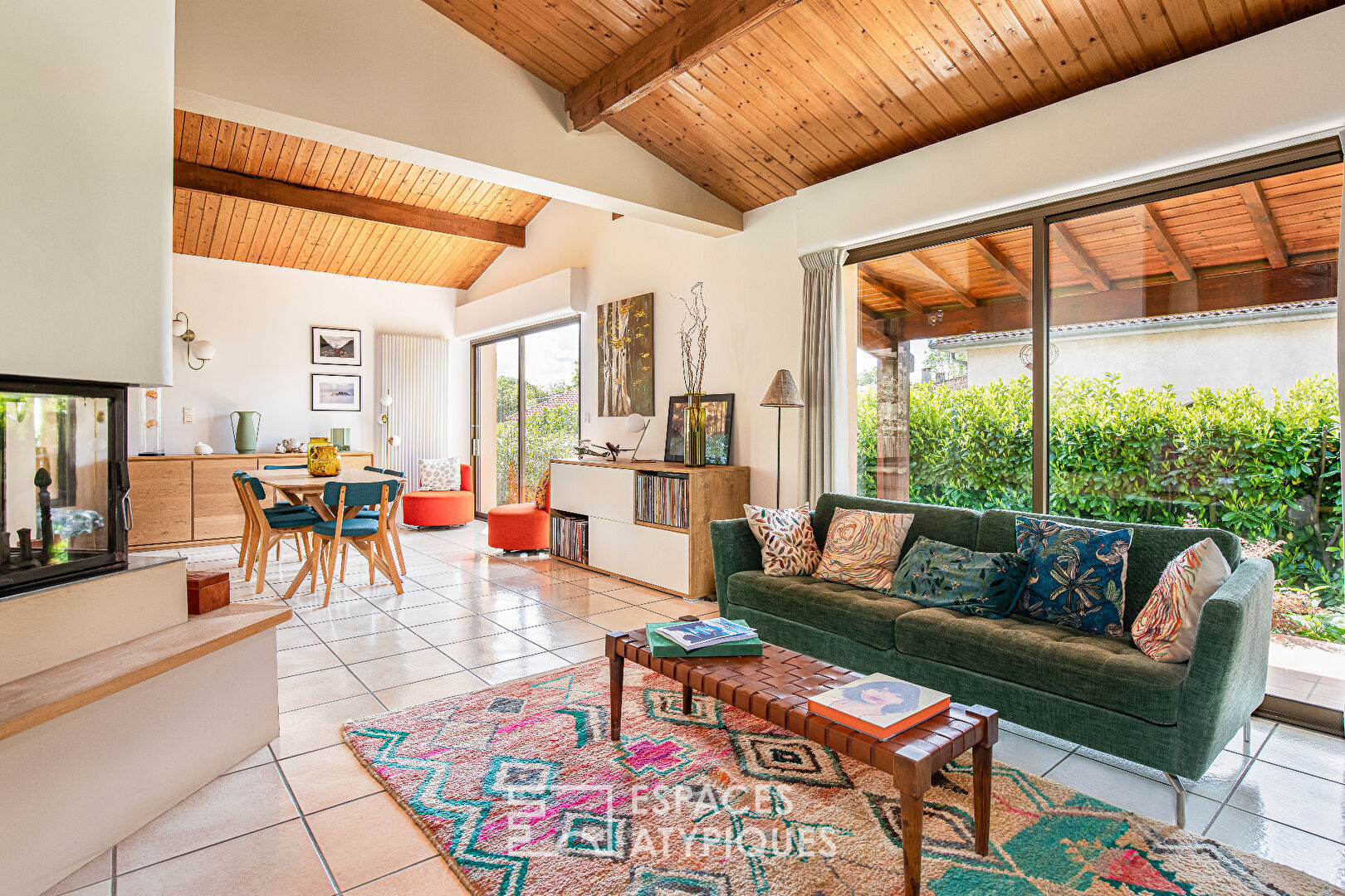 At the end of a peaceful cul-de-sac, this elegant architect-designed residence from the 1980s extends over a large plot of 1300m2, offering an attractive setting focused on nature. With its 234m2 of living space, this unique property combines space, brightness and functionality. As soon as you enter, you will be seduced by the welcoming atmosphere that reigns in this house. The vast living room, bathed in natural light thanks to its large bay windows, invites you to relax and socialize. A warm insert adds a touch of charm, while the spacious equipped kitchen, accompanied by a practical scullery, is ideal for moments of sharing with family.