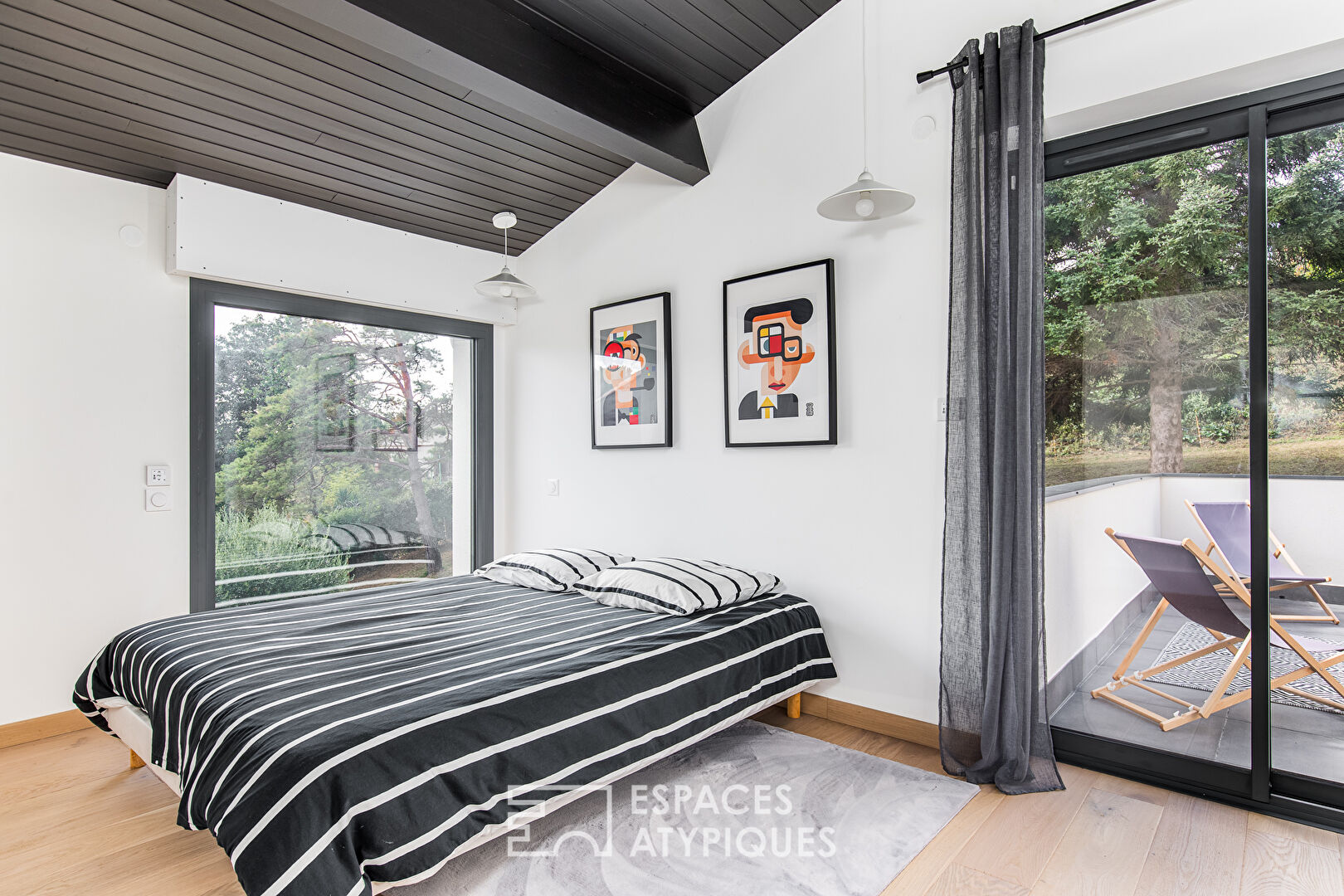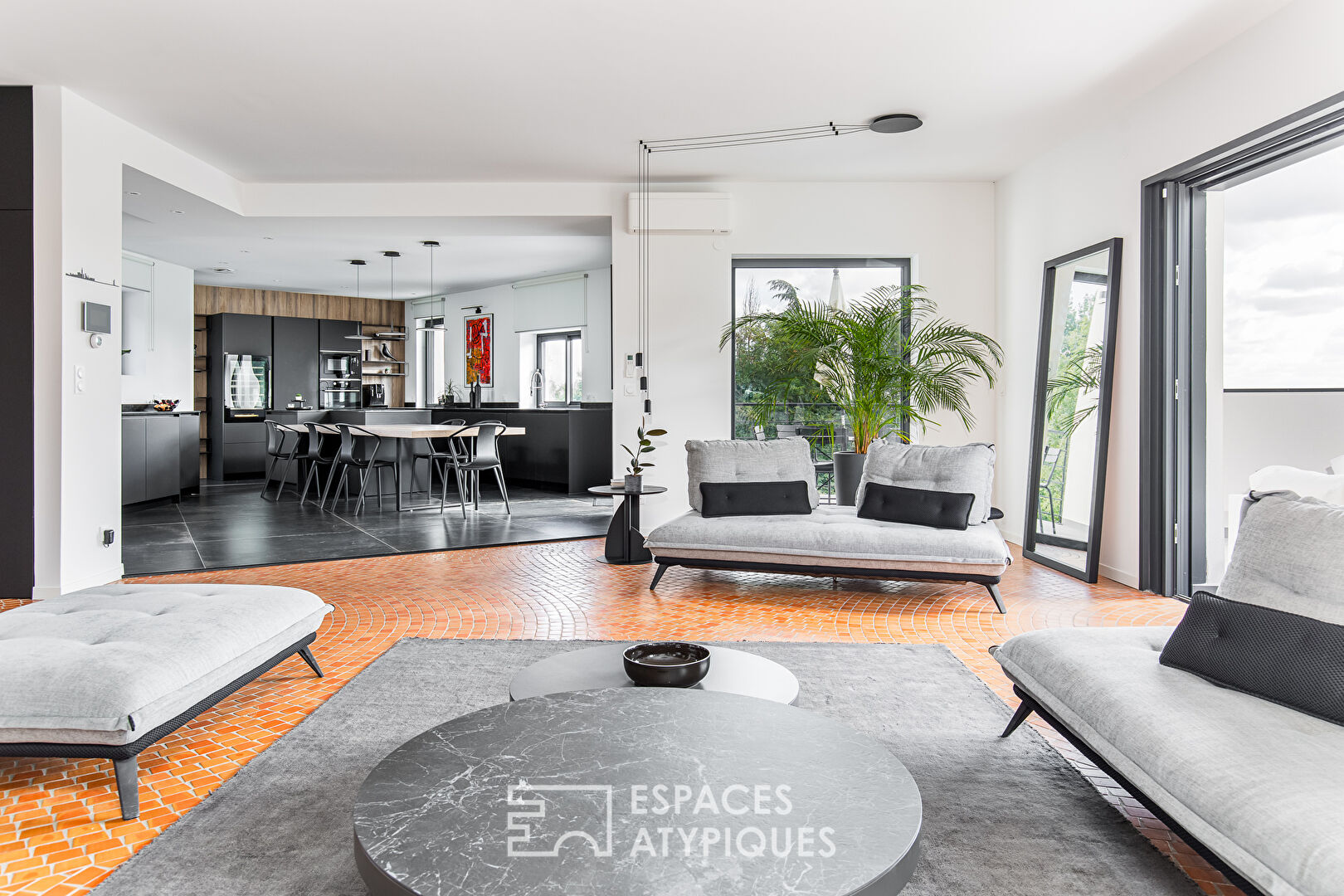 On the heights of Castanet-Tolosan, this 229sqm house benefits from a completely unobstructed view over a 3000sqm plot. The recent renovation highlights the typical volumes of the 1980s, with its bold choices and the quality of the materials used. The beautiful living space opens onto the panoramic terrace and the wooded garden. This first level has a bedroom with adjoining bathroom, as well as a laundry room. Upstairs a secondary living room leads to the three bedrooms of the children’s area and the bathroom. Two of them access their own terrace. The quiet master suite has a beautiful bathroom and an outdoor alcove. The garage and the cellar of more than 100sqm in the basement complete the services of the house.