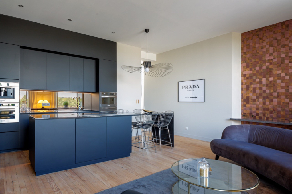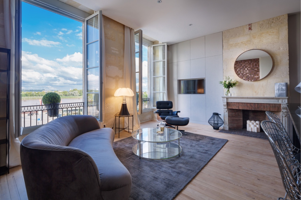 In the popular historic district of Chartrons, on the second floor of a freestone building from 1880, a former Bordeaux trading center, with an exceptional view of the Garonne.