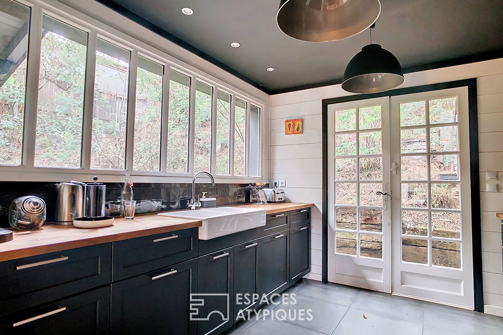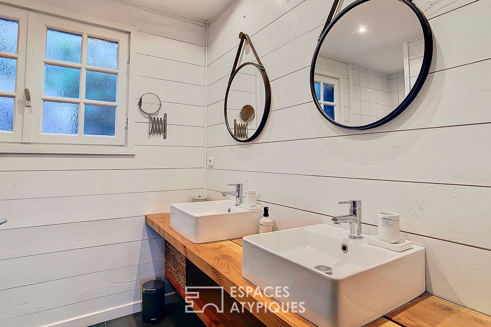 A practical laundry room also completes the amenities. To take full advantage of the surrounding natural setting, a rooftop has been set up, offering an ideal relaxation space.