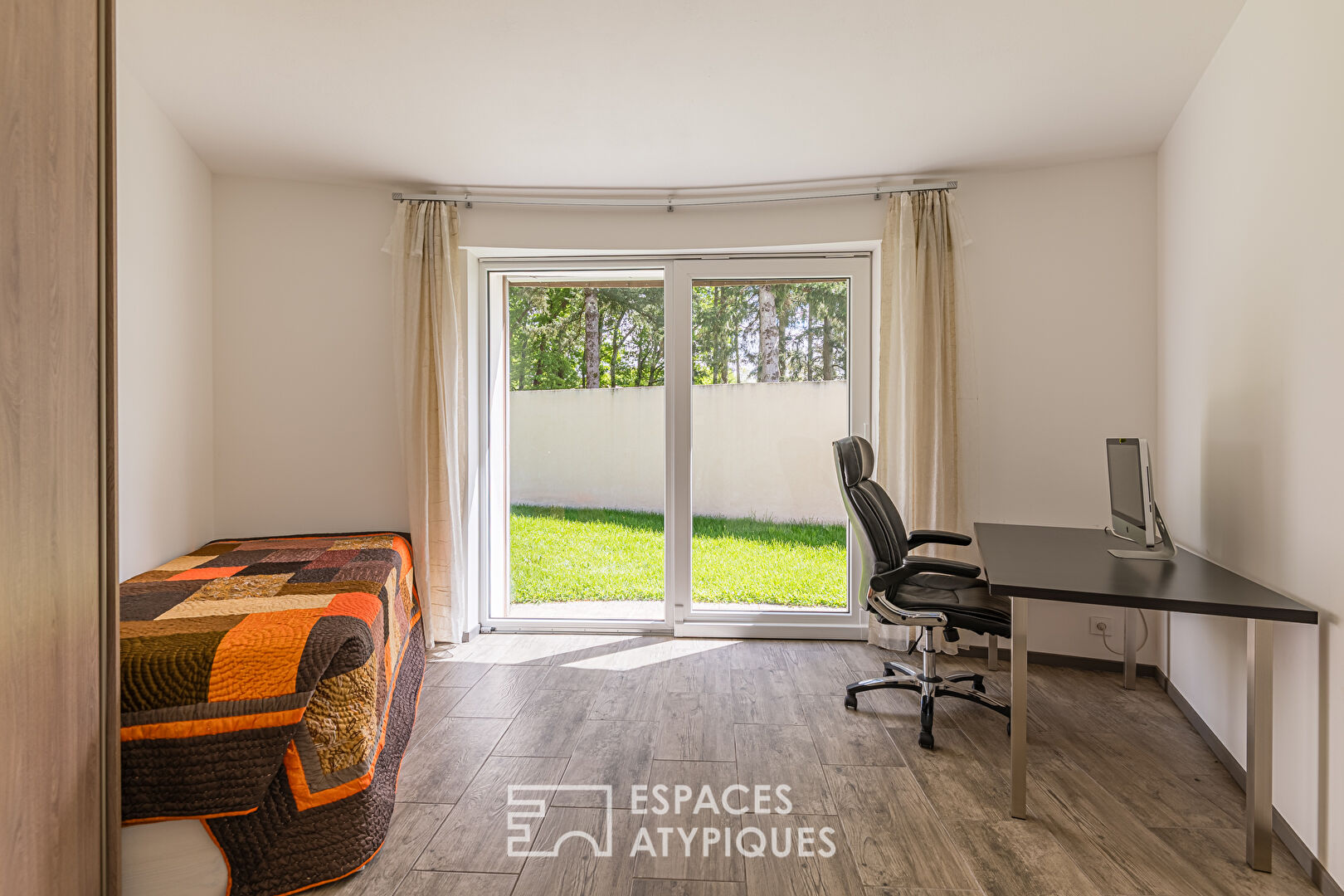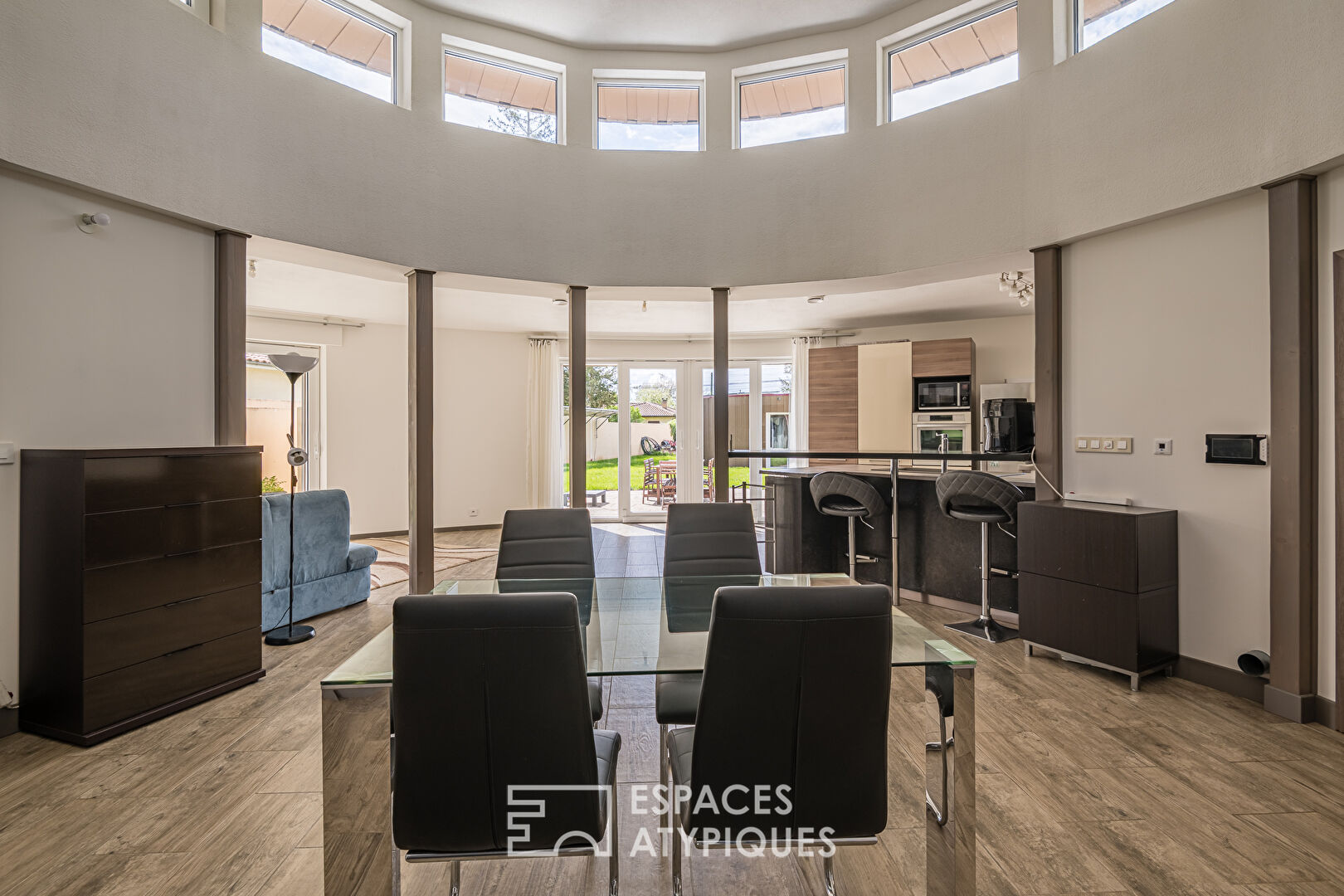 In Saint-Denis-de-Pile, this contemporary house with circular lines offers a living environment that is as unusual as it is innovative. Entirely on one level, this property with cylindrical architecture extends over approximately 130 sqm of living space, in the heart of an enclosed and landscaped plot of over 1,200 sqm.
