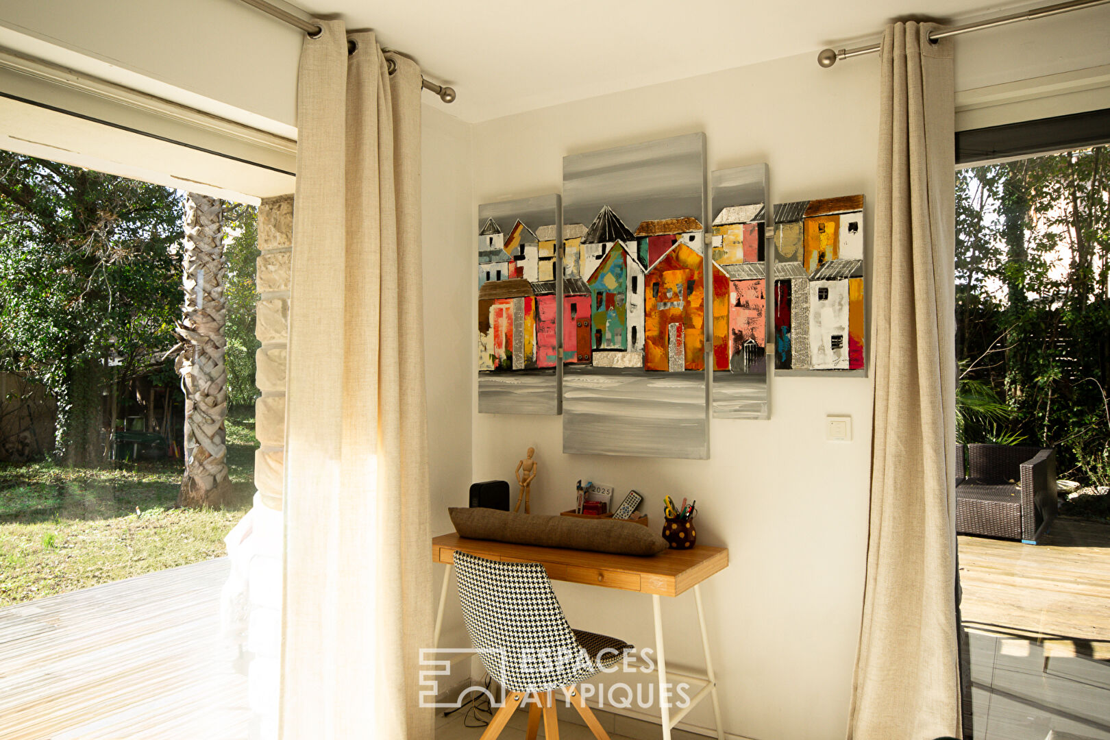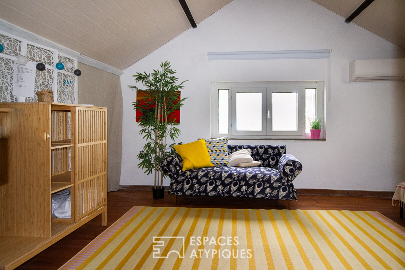 From the moment you enter, your eye is captivated by the tastefully orchestrated décor, where old and new converse in a harmony of bold colors. Each room seems to have been touched by an artist’s hand, offering a vibrant and welcoming atmosphere. With its six bedrooms, the house offers generous living spaces, perfect for a creative family or a spacious lifestyle.