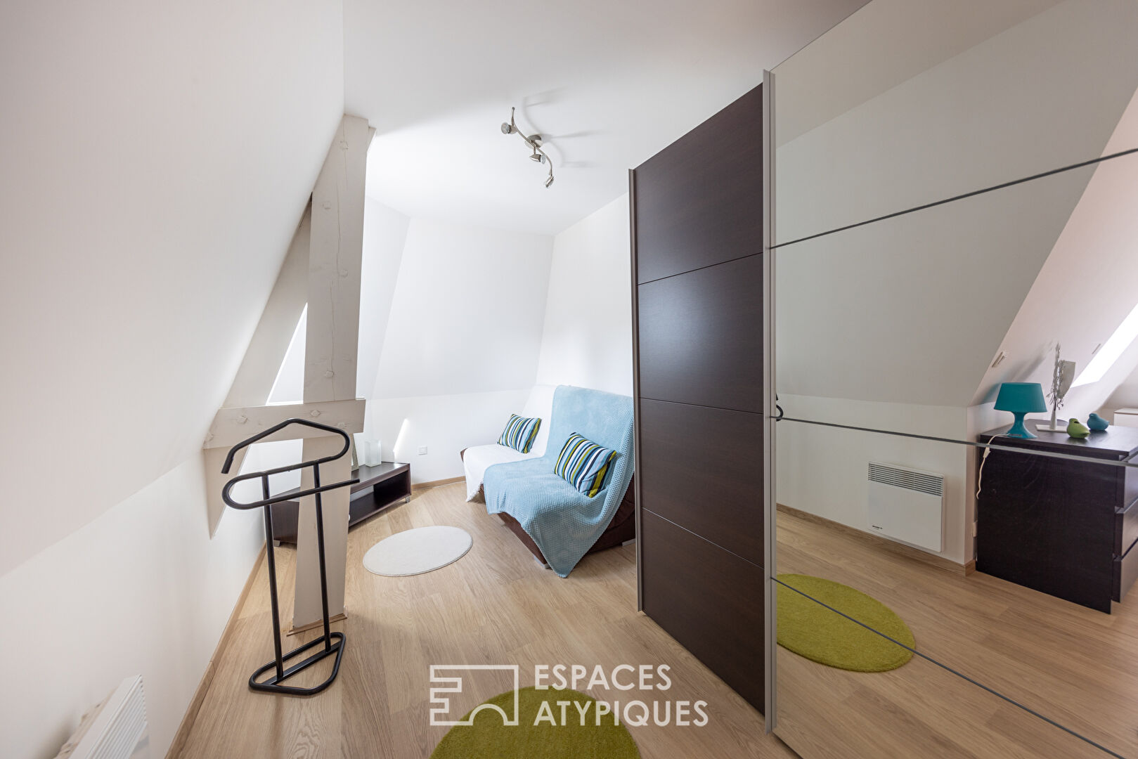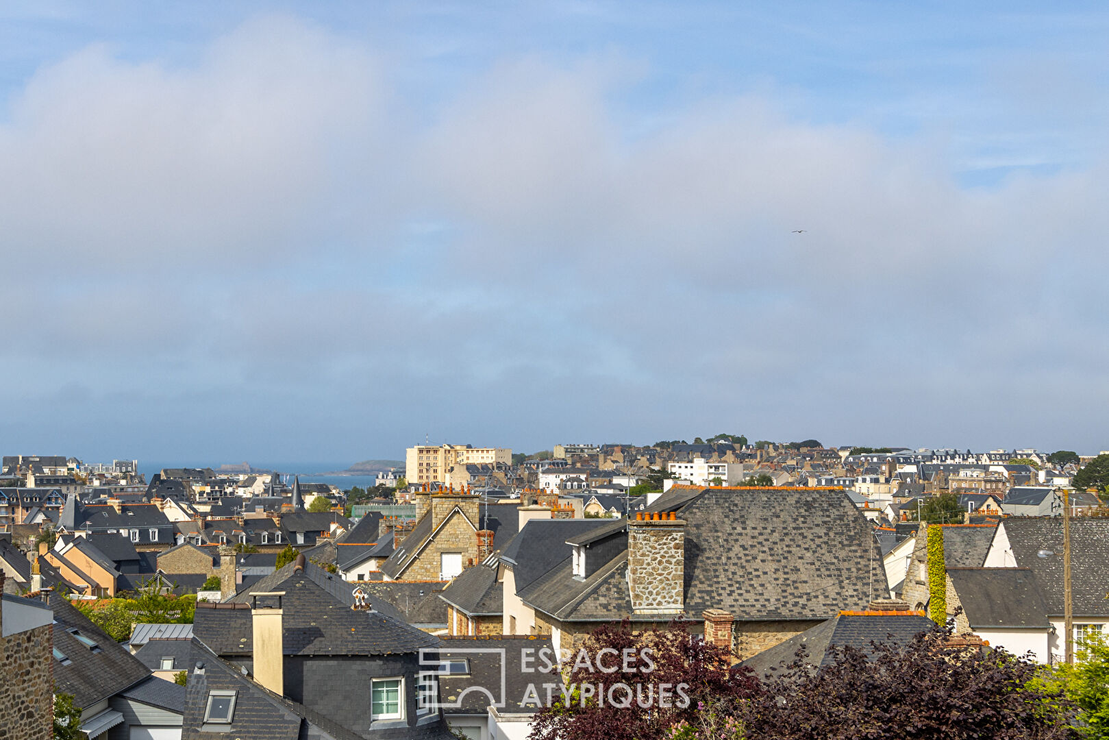 Located in the seaside town of Dinard, close to shops and beaches, this pretty 83m2 duplex which has many qualities benefits from a privileged location. Its location on the top floor of a building has the major advantage of an unobstructed view of the sea beyond the rooftops.