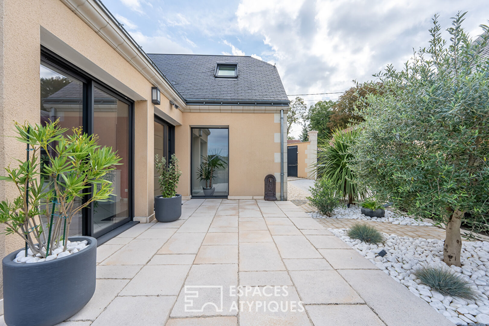 Ideally located in a small, peaceful alleyway just a few minutes from the city center of Tours, this contemporary house from 2010 of approximately 127m2 and its 43m2 studio offer an unobstructed view, all on a plot of 473m2.