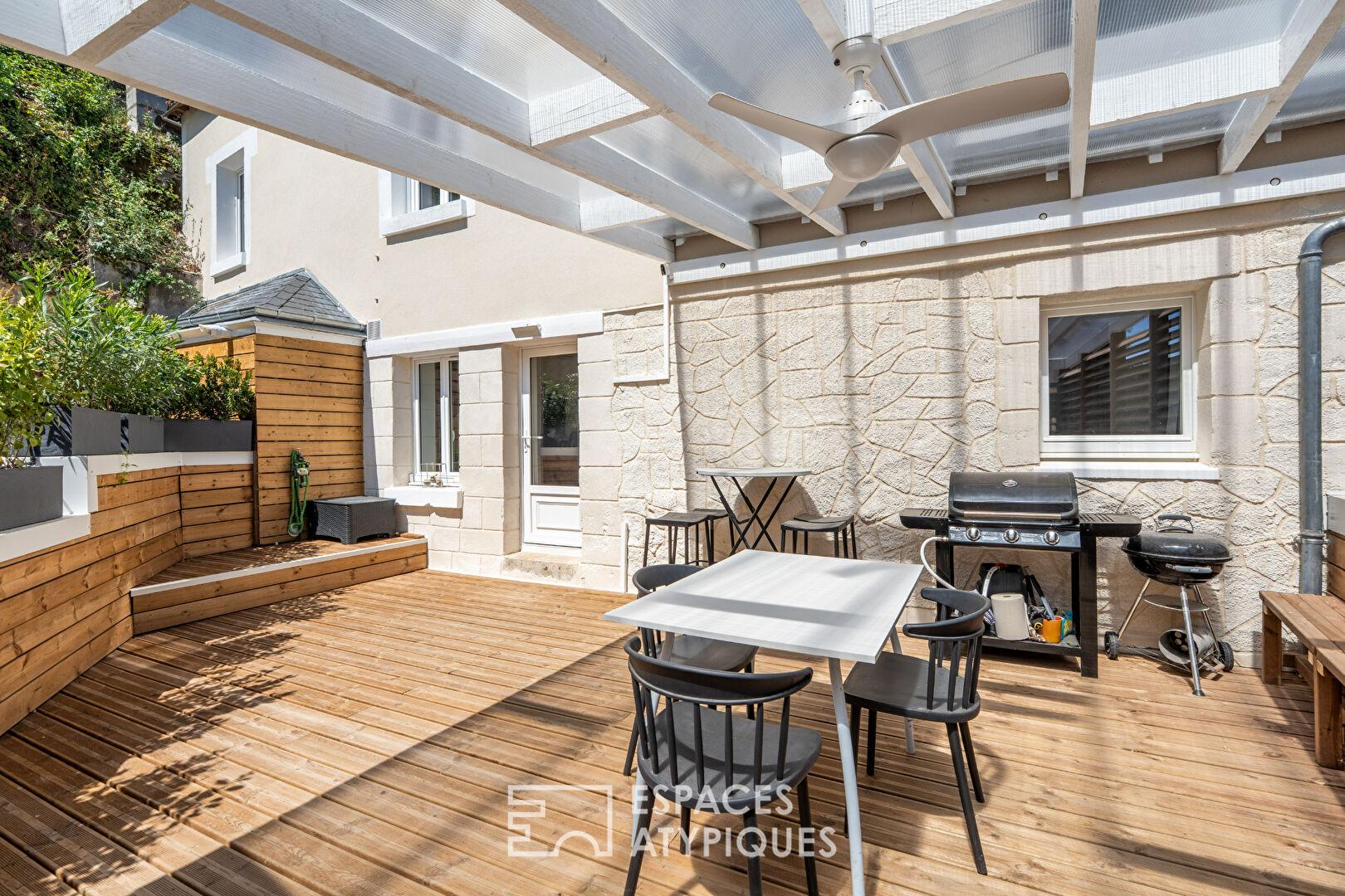 Nestled on a hillside in the heart of the charming town of Vouvray, this fully renovated house offers 145 sqm of floor space on a 110 sqm plot.