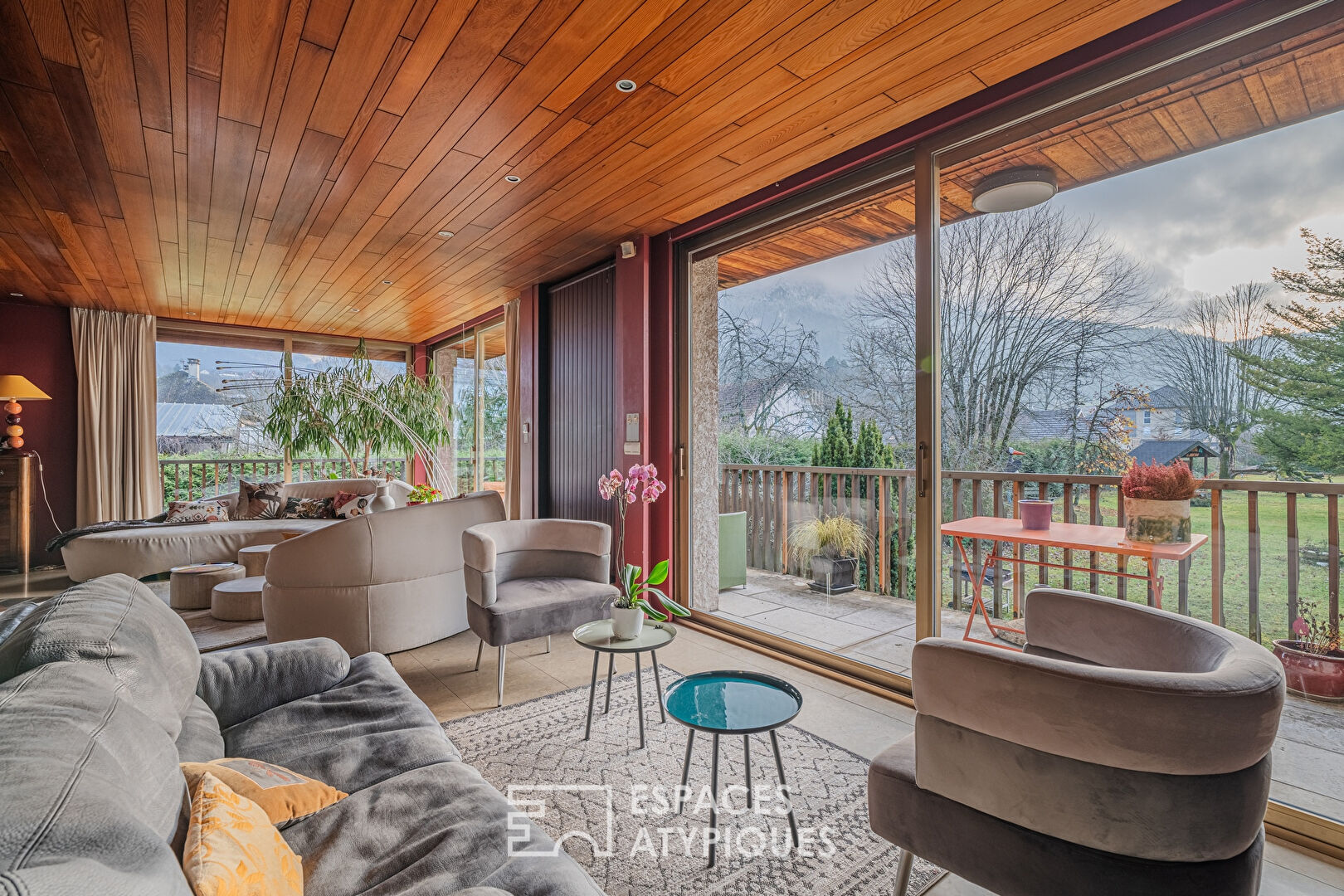 Not far from the town centre, a stone’s throw from all amenities, this beautiful family home offers an exceptional living environment in a residential area. Located in the heart of a natural environment in Saint-Laurent-du-Pont, this property with remarkable volumes seduces with its 70s charm and its characterful materials.