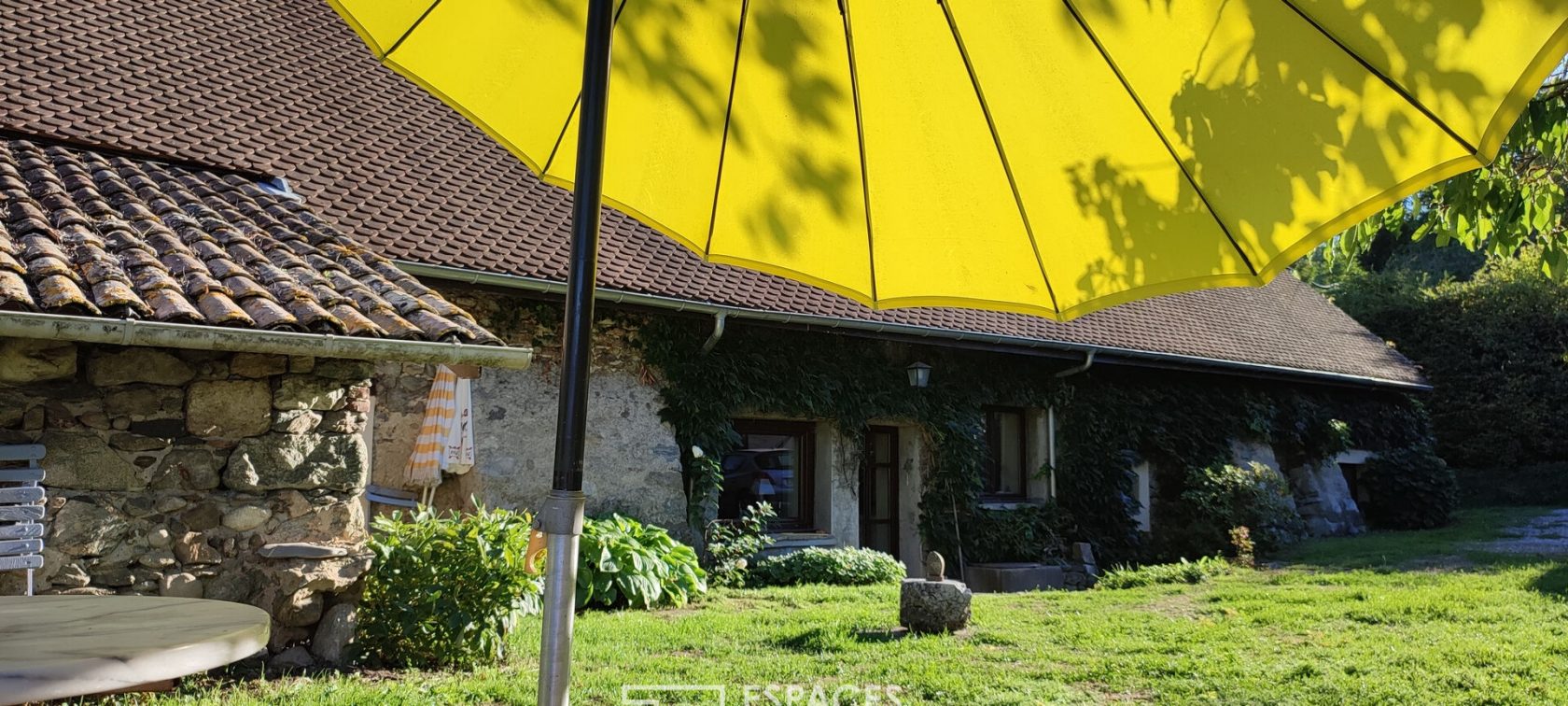 Overlooking Lake Monteynard and offering a panoramic view of the countryside and the mountains, this typical Trièves farmhouse offers 175 sqm of living space on nearly 1.5 ha of land. In the heart of its green environment, the property is discovered at the end of a dead end and immediately charms the visitor eager for serenity. The entrance to the house opens onto a fitted and equipped kitchen, equipped with a wood-burning stove, a guarantee of gourmet meals. In its continuity, a living room with fireplace offers a beautiful volume opening onto the South terrace. There follows a large dining room under vaults, with its fireplace, then a first bedroom and its adjoining bathroom. Opposite this day area, three comfortable bedrooms share a large bathroom with bath and shower. A toilet completes this ground floor. A wooden staircase provides access to the attic under the framework which offers potential for development and expansion of the house and has a direct exit to the outside. The wooded exteriors are divided between lawn, vegetable garden, orchard and walnut grove and are embellished with a pond and a well. Two stone annex buildings serve as sheds and allow storage, a workshop, a bread oven. Finally, a boiler room/laundry room, a cellar and a clay cellar complete this property complex. A carport to park 2 vehicles. Preserved from the urban tumult, this charming house, close to hiking trails and Lake Monteynard will offer a beautiful living space to nature lovers and would also be suitable for a bed and breakfast activity. Wood fuel heating. Existing heat pump, not currently used. ENERGY CLASS: E / CLIMATE CLASS: E. Estimated average amount of annual energy expenditure for standard use, based on energy prices for the year 2021: between EUR2,951 and EUR3,994 Contact: Véronique MADORE – 06 78 94 62 77