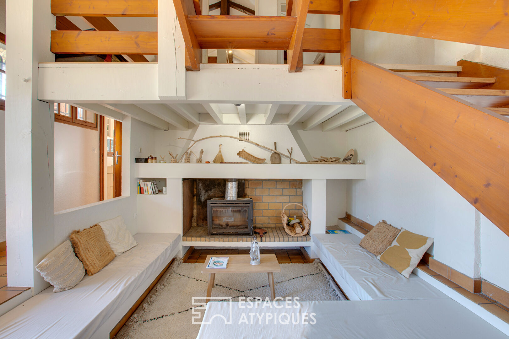 Nestled in the heart of the village of Azur, this early 20th century Landes house takes up traditional architectural codes by combining the charm of the old with contemporary comfort. Located on a fully fenced plot, it offers a warm living environment, enhanced by a terrace and a swimming pool, ideal for enjoying the beautiful days. From the entrance, the living room bathed in light and open to nature creates a welcoming atmosphere. Under a cathedral roof highlighted by exposed beams, the dining area extends harmoniously towards a lounge below, where a wood stove invites you to cozy winter evenings. The separate and functional kitchen has direct access to the outside and has an adjoining storeroom for added convenience. Upstairs, a mezzanine offers an extra bed and serves a hallway leading to two bright bedrooms, a refined bathroom and a separate toilet. The ingenious layout of this house optimizes each space while preserving its unique character. Outside, the terrace naturally extends the living space towards a wooded garden, while the swimming pool is a real asset for sunny days. An adjoining workshop of more than 20 sqm offers additional space, ideal for a creative project or a possible extension. Located less than ten kilometers from the Landes beaches, this house benefits from a privileged living environment, close to shops and schools, combining practicality and serenity. Authenticity and comfort intertwine here to offer an enchanting setting, conducive to a unique art of living. ENERGY CLASS: D / CLIMATE CLASS: B Estimated average amount of annual energy expenditure for standard use, established from 2021, 2022 and 2023 energy prices: between 1630 euros and 2280 euros. Contact: Magali MALBEC on 06 77 52 99 54 RSAC: 490 450 723- DAX